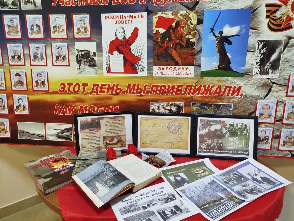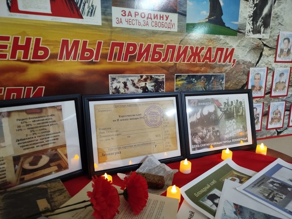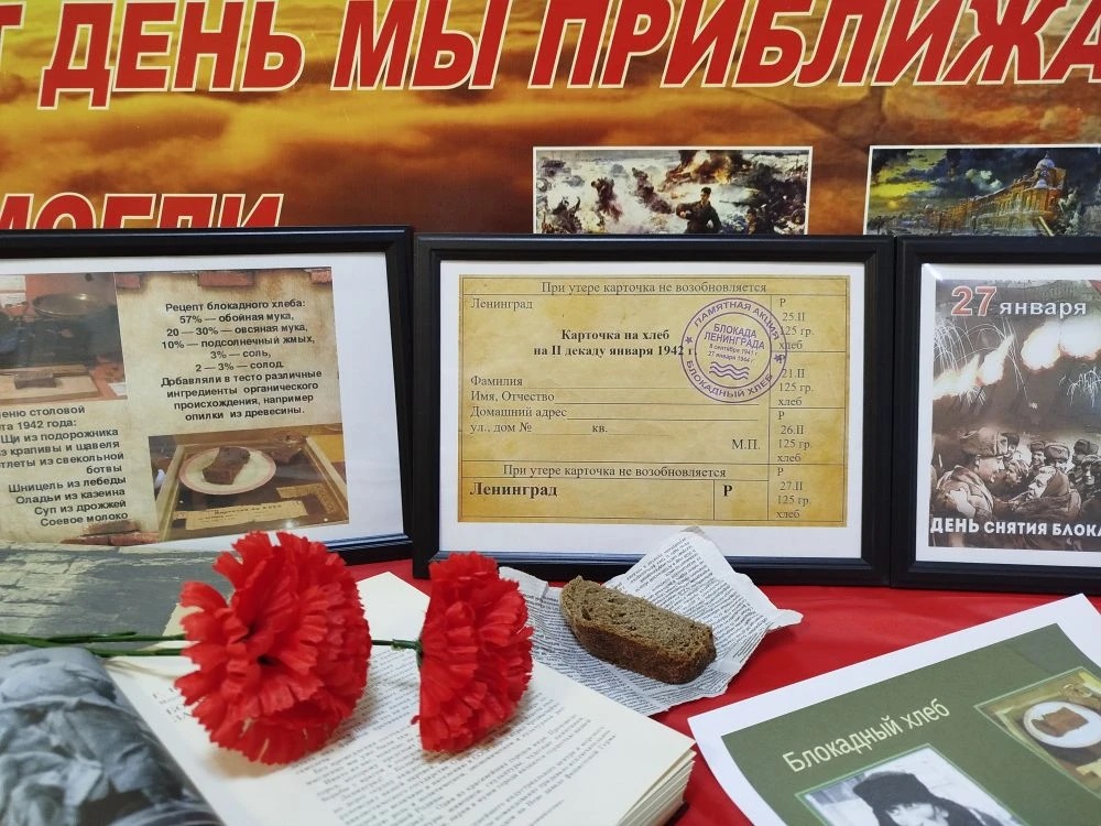 Вспомнили о тяжелых испытаниях, выпавших на долю жителей осажденного Ленинграда: ужасах блокады, героизме и стойкости жителей Ленинграда, о строительстве спасительной «дороги жизни» через Ладожское озеро, защите и обороне Ленинграда советскими солдатами, о норме хлеба блокадников, о том, что значили в то время хлебные карточки. Для того, чтобы проживающие дома-интерната увидели норму суточного хлебного пайка, приготовили кусочки хлеба в 125 грамм, которые помещались на ладони.