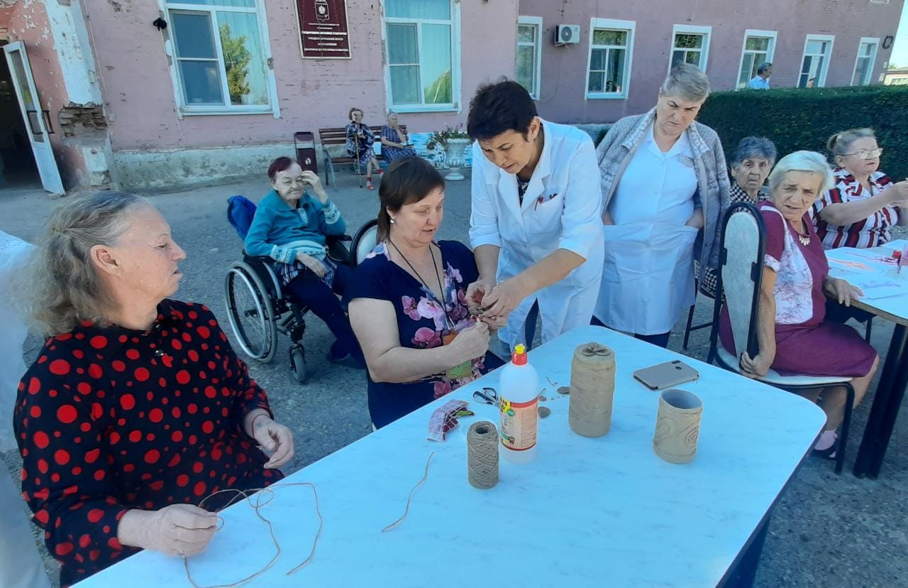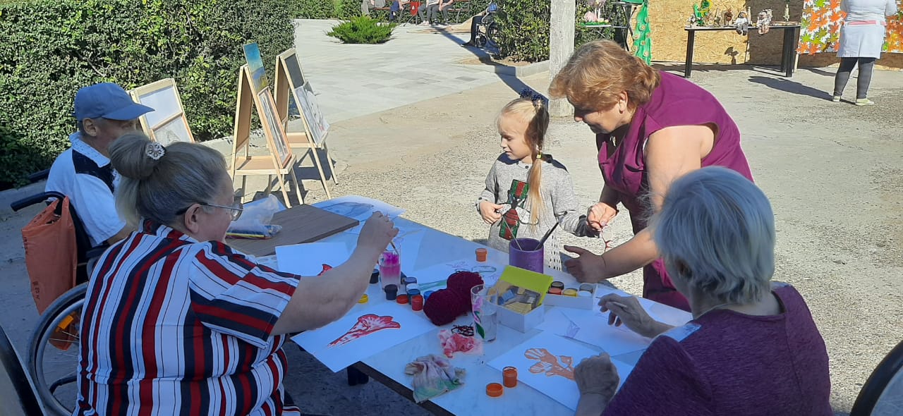 В этот солнечный, наполненный яркими осенними красками день, в нашем доме – интернате состоялись праздничные мероприятия, посвященные Дню Мудрости, Добра и Уважения. Мастер-классы по рисованию нитью и красками, по плетению из джутовой нити, провели талантливые получатели социальных услуг. Была организована выставка творческих работ, которая привлекла внимание присутствующих.