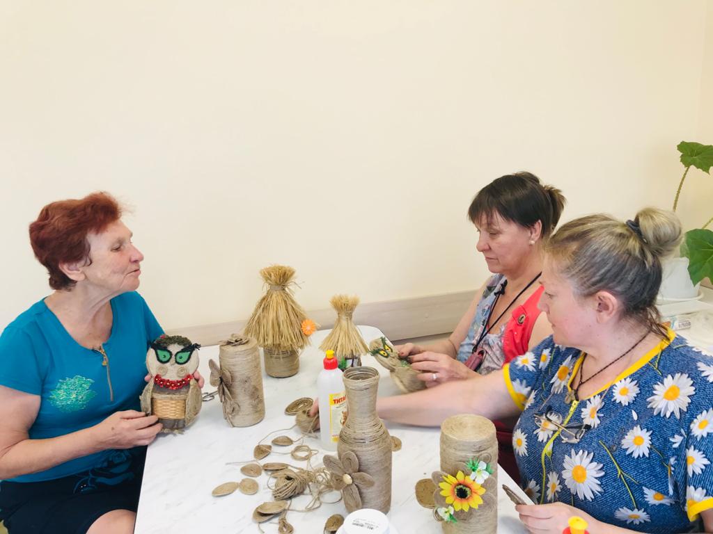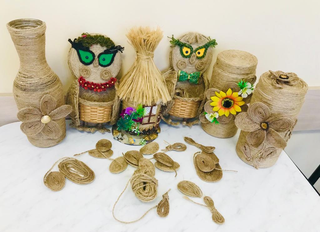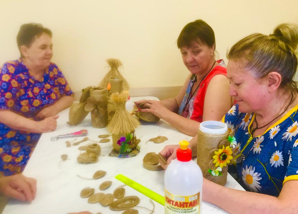Получатели социальных услуг дома-интерната освоили технику создания украшений, бытовых предметов, декорирующих интерьер, используя джутовую нить, как безопасный, природный, экологически чистый материал. Работа продолжалась не один день, мастерицы увлеченно трудились над задуманными поделками. Результатом их труда стали шкатулки, настольные вазы, корзины, коврики и еще масса интересных вещей.