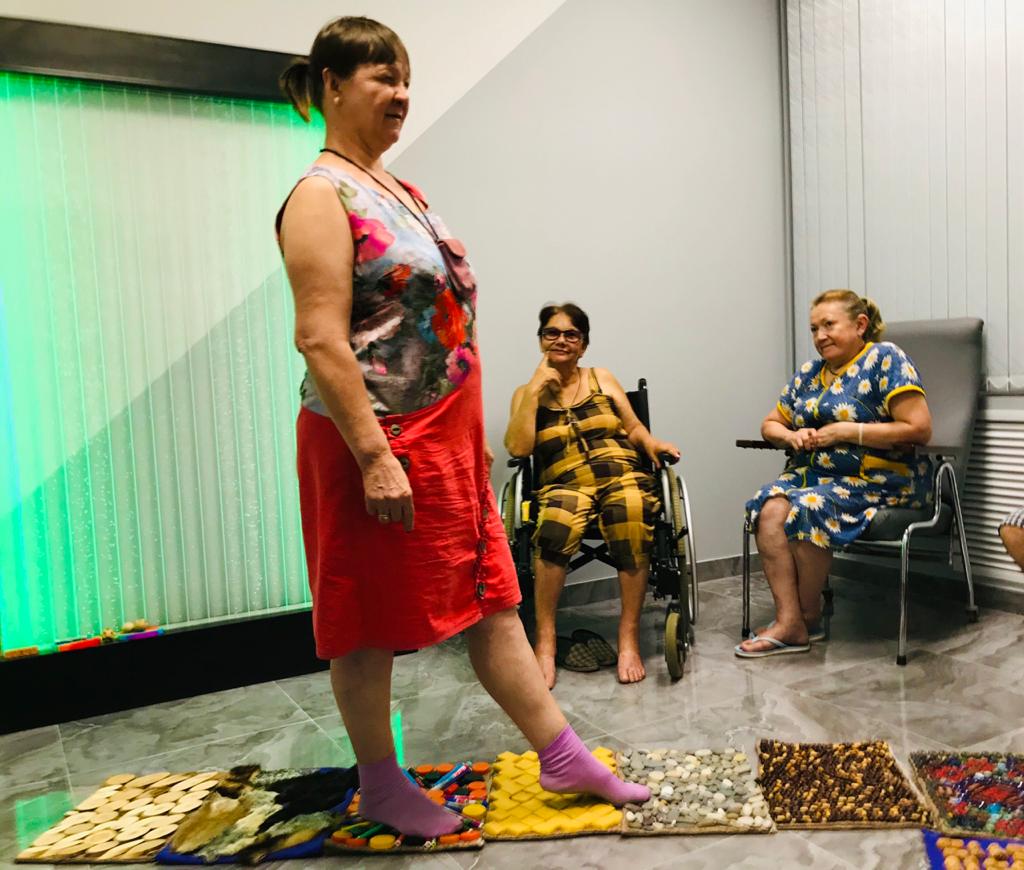 Получатели социальных услуг «Волго-Каспийского дома- интерната», посещая мастер-классы, предложенные специалистами учреждения, освоили технику изготовления разнообразных ортопедических ковриков. По завершению работы, все коврики объединили в тактильную дорожку, которая универсальна в применении и полезна любому человеку, живущему в городе и испытывающему дефицит тактильных ощущений. Созданная своими руками дорожка имеет мощный терапевтический эффект, полезна для развития тактильных ощущений, необходима людям с ограниченными возможностями для восполнения двигательной активности.