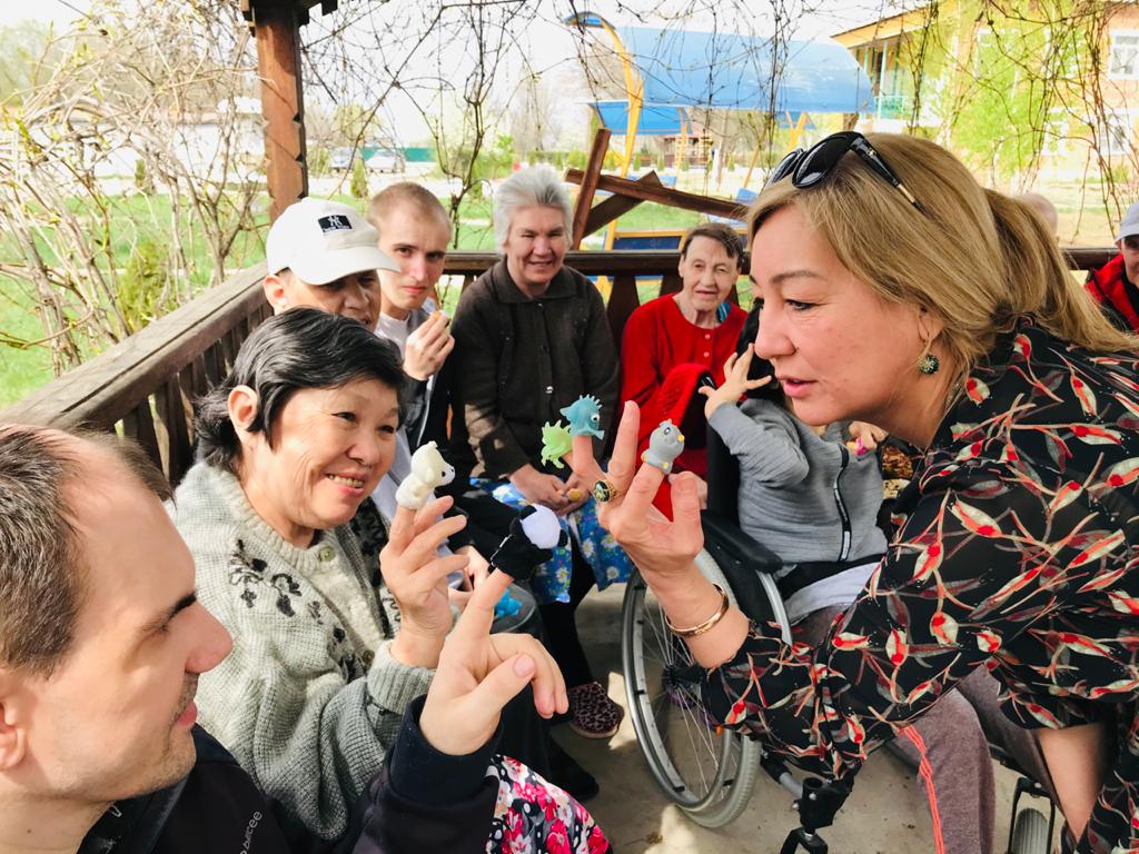 Наступившие весенние солнечные деньки располагают к проведению времени на свежем воздухе, где получатели социальных услуг «Волго -Каспийского дома- интерната» с интересом принимают участие в творческих мероприятиях. Сегодня проведено занятие с использованием пальчиковых кукол. Это прекрасный материал для развития воображения, мышления и речи, развитие мелкой моторики: в ходе игр вырабатывается ловкость, умение управлять своими движениями, концентрировать внимание на одном виде деятельности, что является для инвалида естественным средством самовыражения.