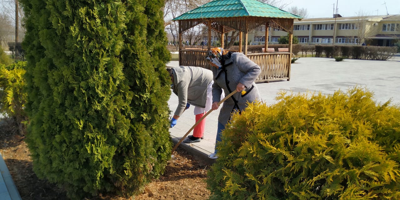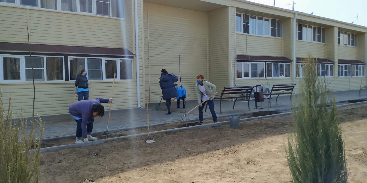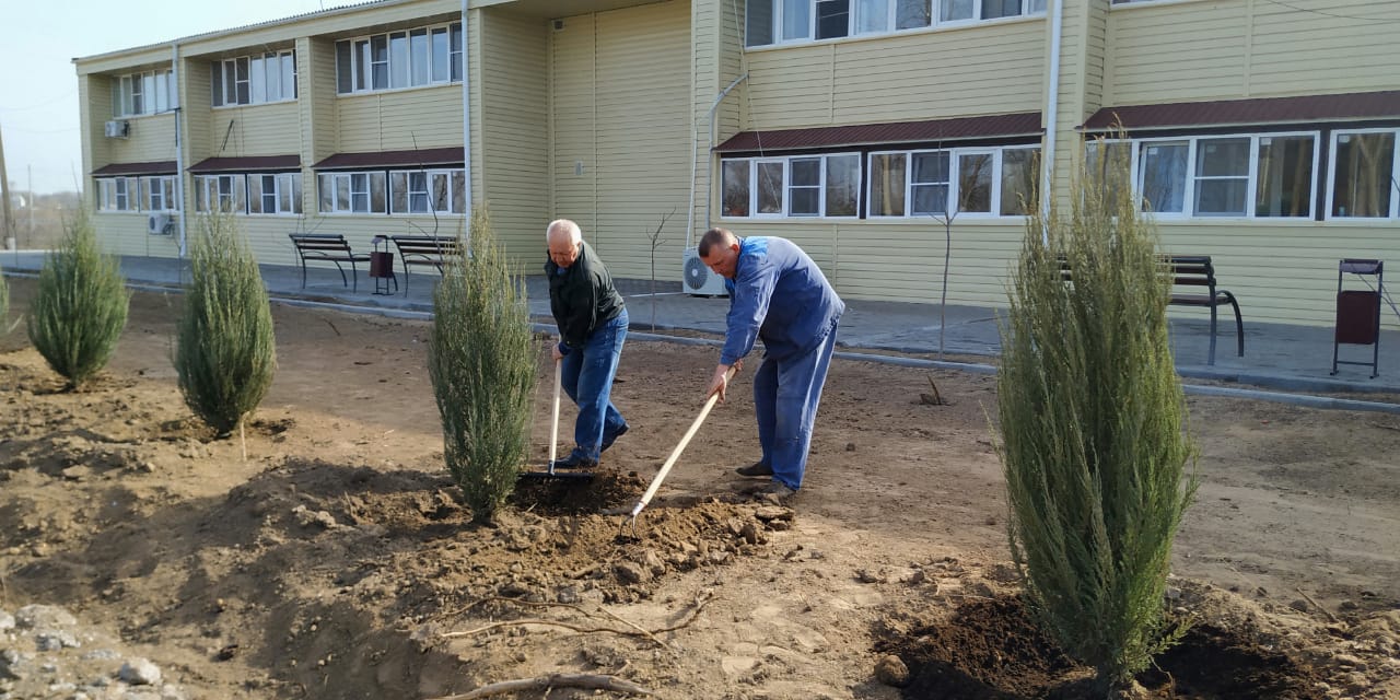 Замечательная погода способствовала бодрому настроению и трудоспособности. Все вместе очищали прилегающую территорию и территорию учреждения от мусора, от засохших кустарников и опавшей листвы, подстригали деревья и вывозили сухие ветки. Самым приятным занятием оказалась посадка новых деревьев и кустарников. В результате появилась замечательная центральная аллея из молодого можжевельника.
