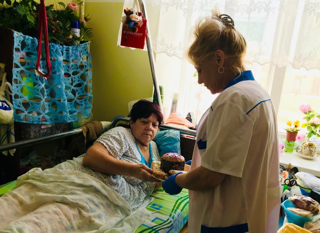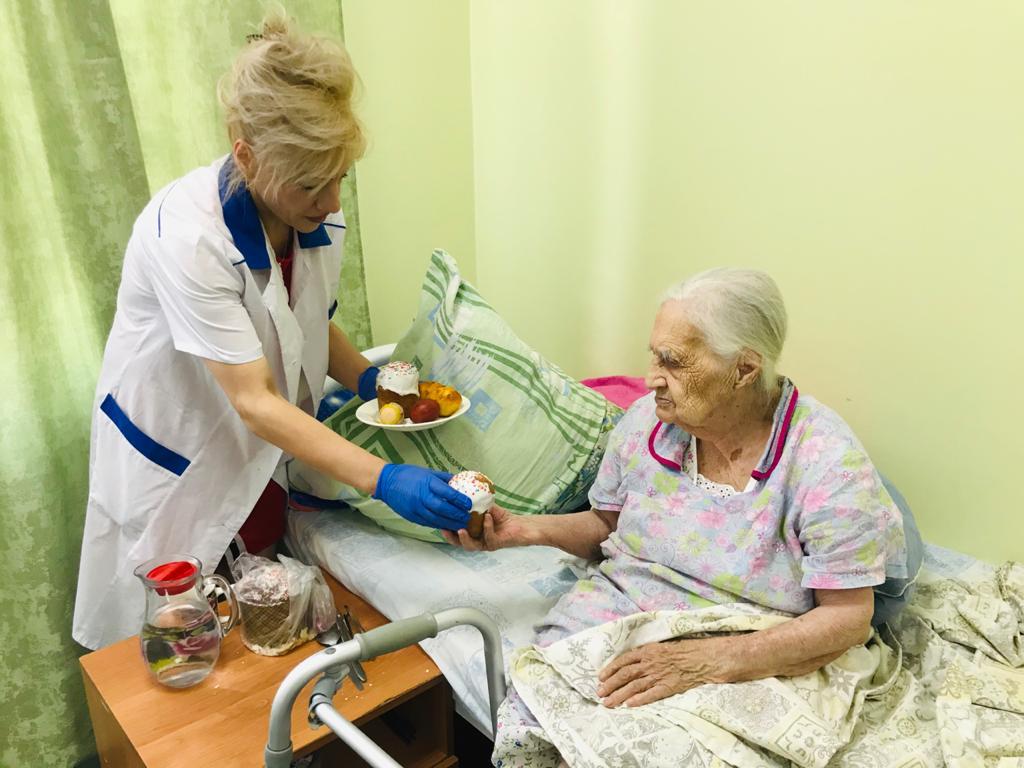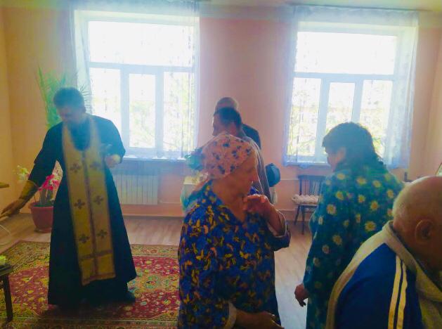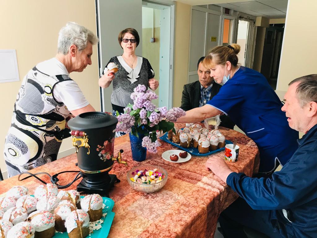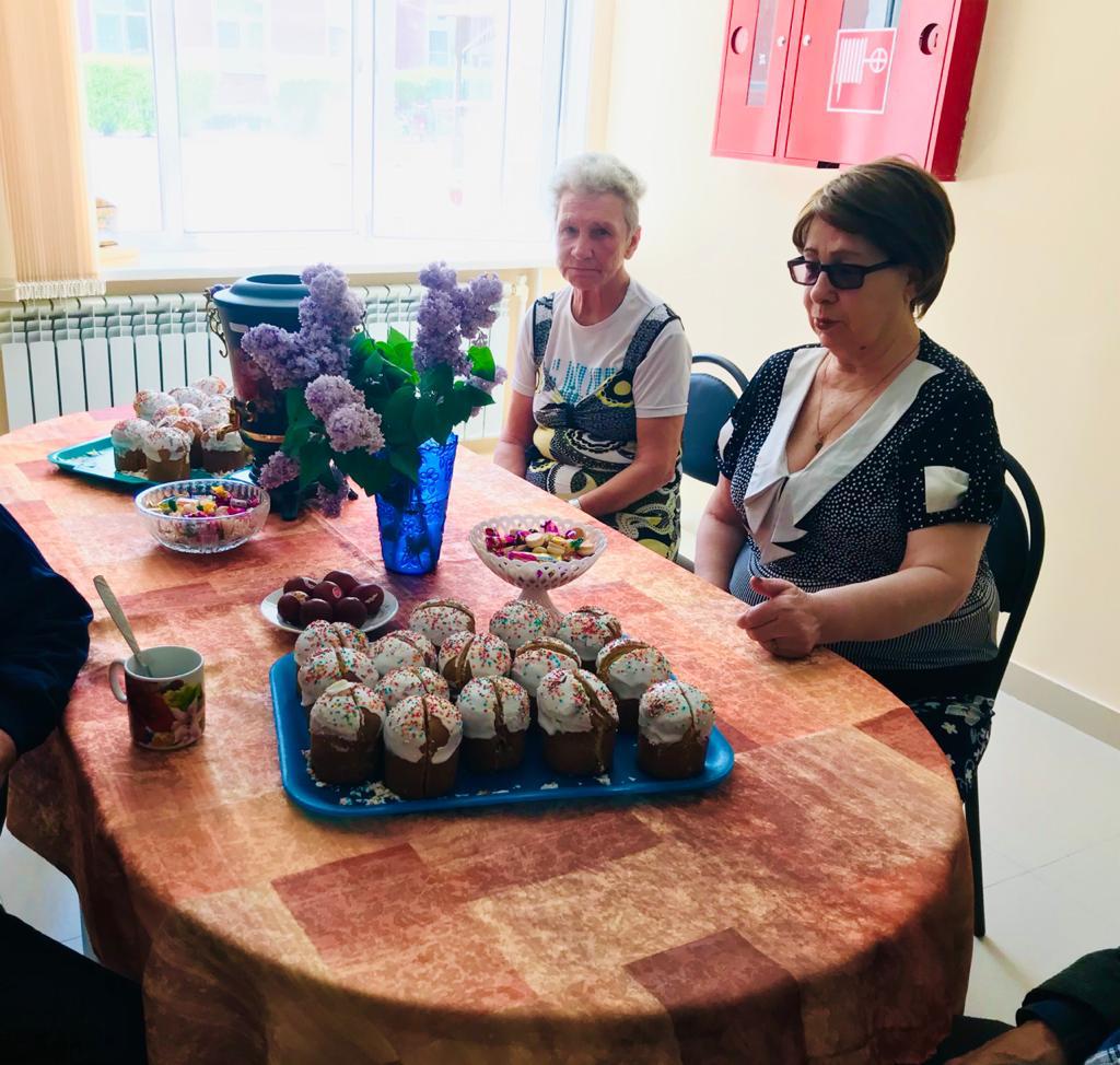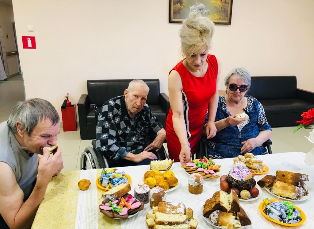 Утром Воскресения Христова для получателей социальных услуг дома-интерната был накрыт праздничный стол и состоялось пасхальное чаепитие. Проживающие поздравляли друг друга с праздником, желали здоровья, вспоминали о том, как праздновали Пасху во времена их молодости, слушали и пели тропарь Пасхи «Христос Воскресе!»