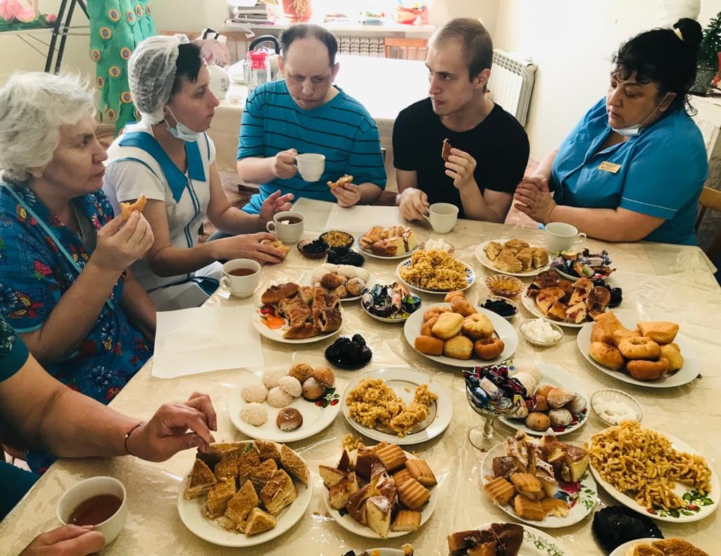 В этот замечательный день, во время мастер – класса «Здравствуй, Ураза-байрам!», получатели социальных услуг нашего учреждения своими руками готовили угощения к праздничному столу. Ароматные запахи кайнаров, баурсаков и разнообразной выпечки наполнили дом- интернат домашним уютом, теплом и добрыми воспоминаниями. Проживающие с удовольствием занимались приготовлением любимых с детства блюд.