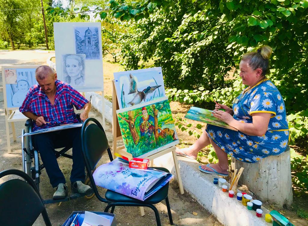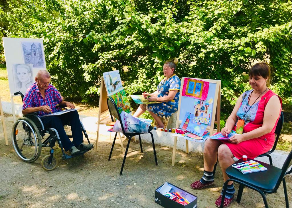 В Волго-Каспийском доме-интернате для получателей социальных услуг созданы благоприятные условия для проведения занятий по арт-терапии на открытом воздухе. Наше пространство отделено от суеты большого города. Здесь царит тишина, властвуют природные звуки, запахи. Природная среда создает особую атмосферу во время занятий, дает возможность побыть расслабленными, непосредственными, вспомнить детство, обратиться к своим естественным и ярким чувствам.