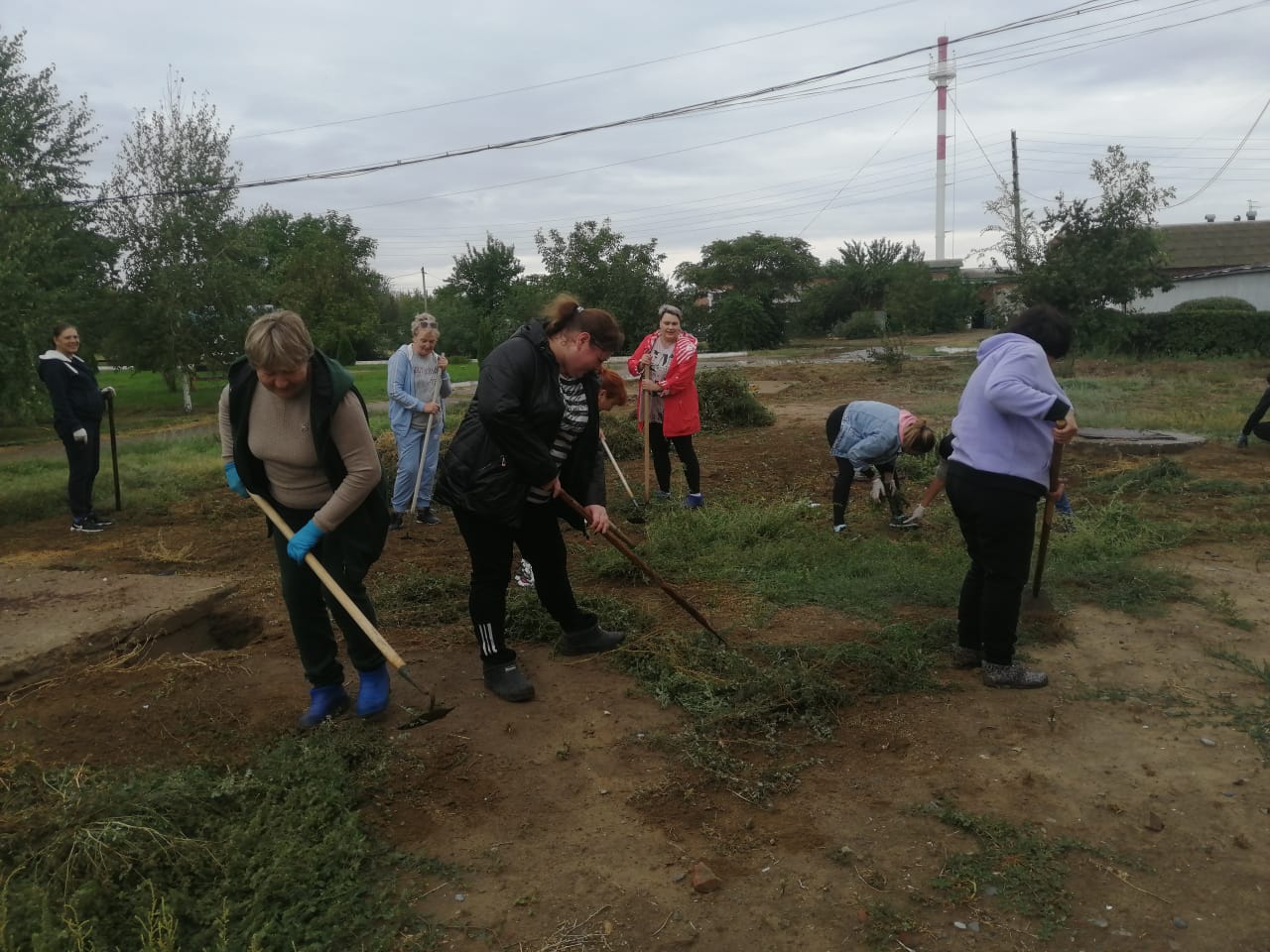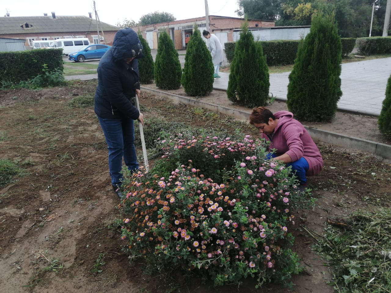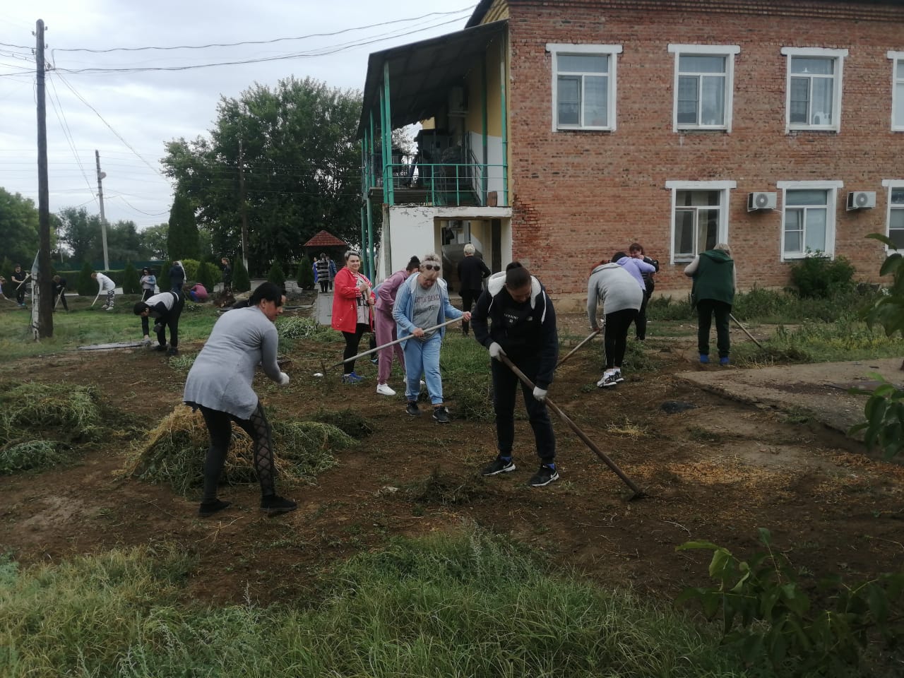 Несмотря на переменчивую осеннюю погоду, дружно взялись за грабли, кисти, мётлы и лопаты: собирали мусор, приводили в порядок цветочные клумбы, вели работы в молодом фруктовом саду. Используя технические средства дома-интерната, выкорчевывали пни, подготавливая площадки для высаживания новых деревьев.