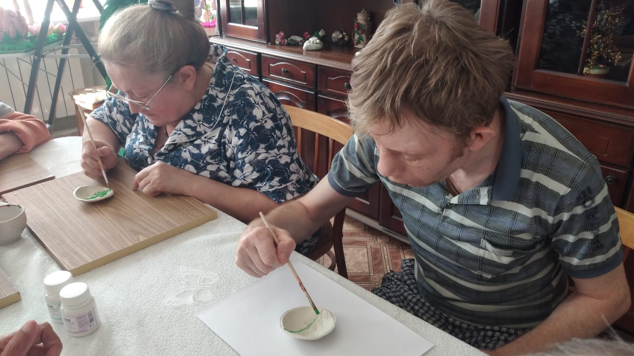 В Волго-Каспийском доме - интернате продолжаются занятия по глинотерапии. Данный вид терапии относится к арт-терапевтическим методам работы и предусматривает не только лепку, но и ее декорирование.
