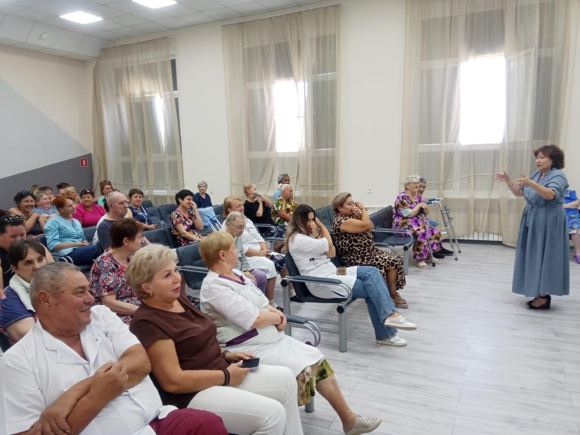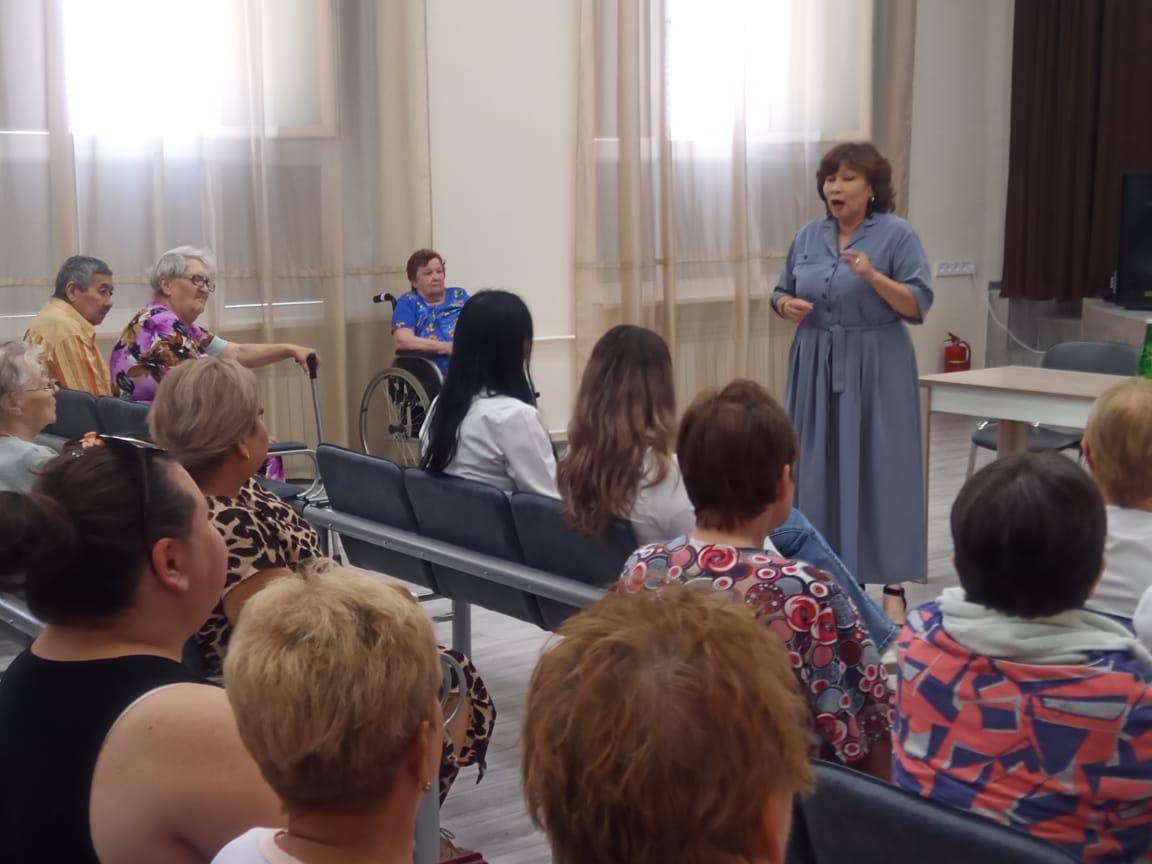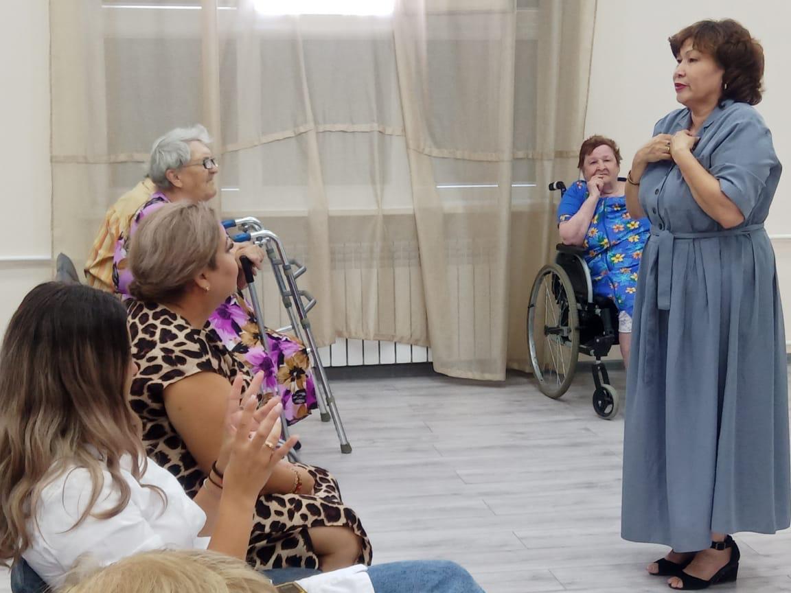 В рамках реализации партийного проекта «Старшее поколение», в «Волго-Каспийском доме-интернате» состоялась встреча сотрудников и получателей социальных услуг с директором дома-интерната «Забота» Кушалаковой Оксаной Германовной.