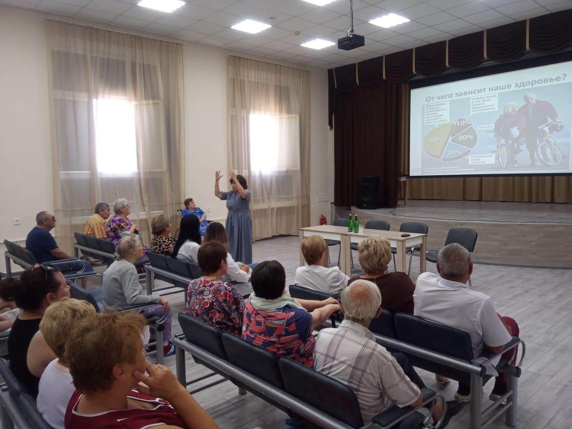 Вопросы профилактики когнитивных нарушений у лиц старшего возраста волнуют, практически каждого. Оксана Германовна, в своем выступлении, отразила способы улучшения памяти, указала на факторы, влияющие на продолжительность жизни и когнитивное долголетие, сделав особый акцент на ведение здорового образа жизни. С интересом были разучены упражнения для развития нейронных связей, которые являются одним из важных критериев сохранения умственных способностей человека.