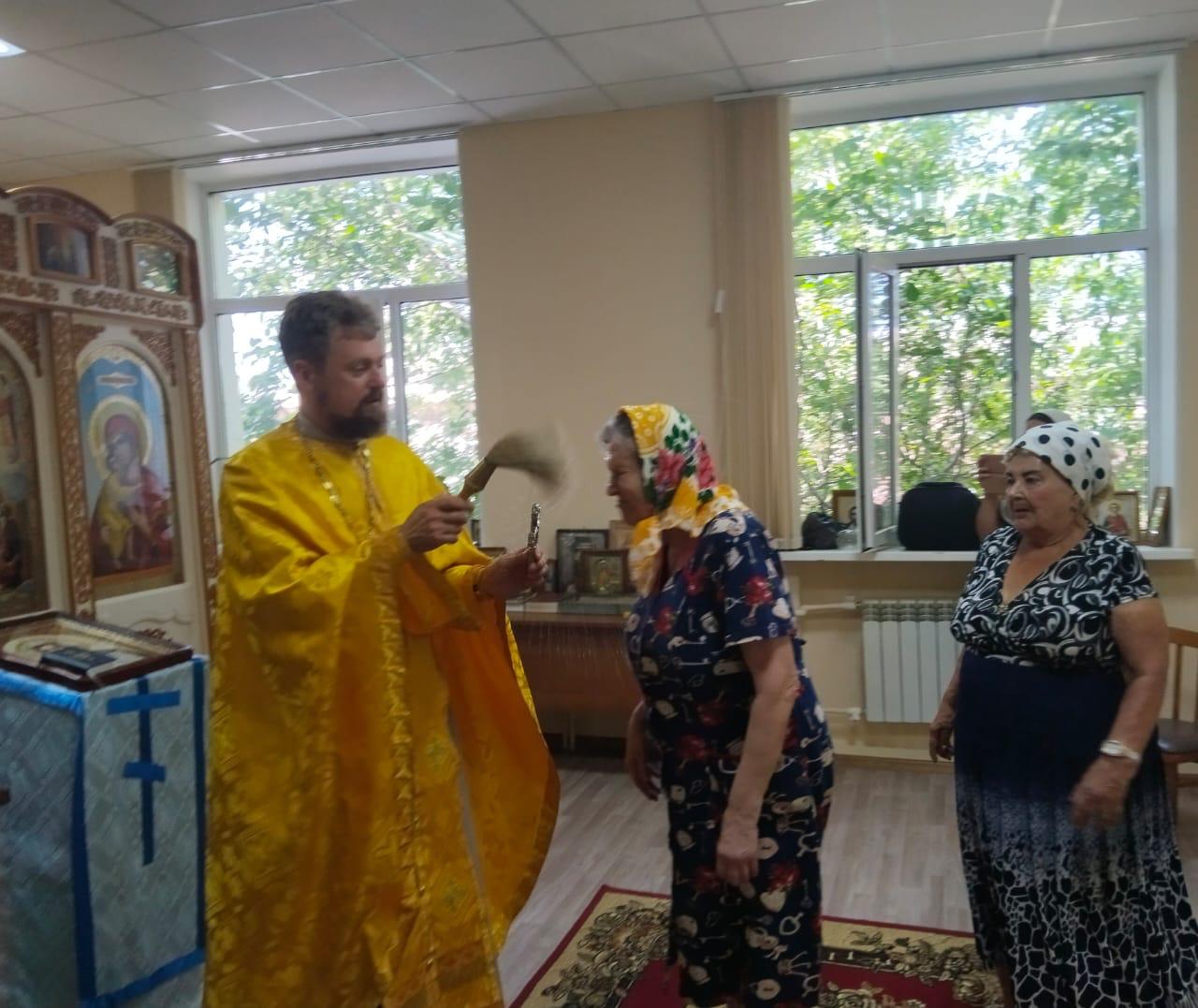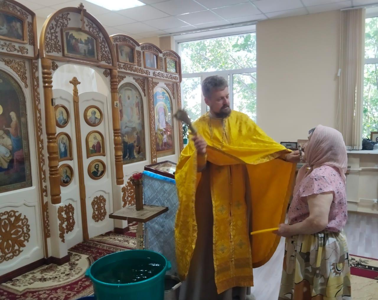 Отец Константин посетил и проживающих, не имеющих возможность передвигаться, поздравил с праздником, побеседовал с ними на духовные темы, интересующие людей, ответил на несущие вопросы и окропил их комнаты святой водой, подарив чудесную возможность приобщиться к празднику.