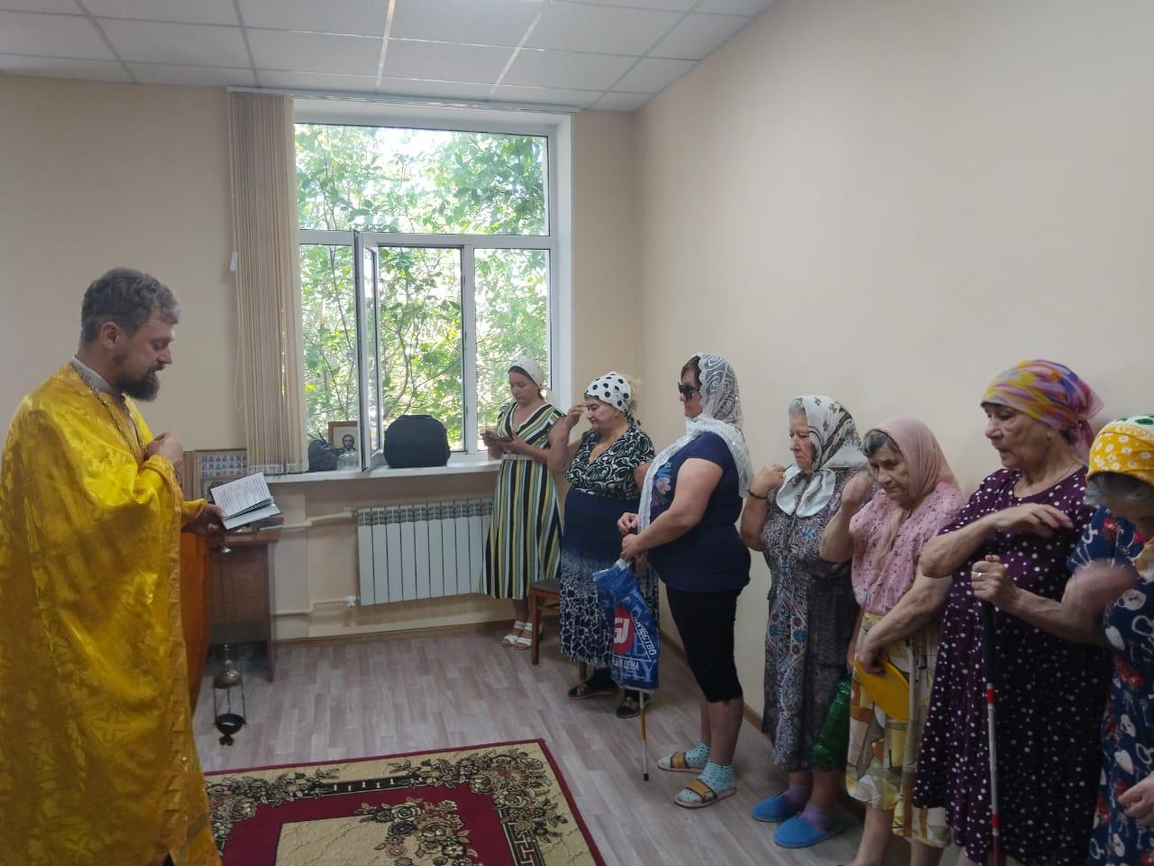 Настоятель Храма святителя Николая – протоиерей Константин Широков, в этот праздничный день, посетил «Волго-Каспийский дом-интернат», провел молебен о здравии присутствующих, и совершил чин освящения воды, в котором могли принять участие получатели социальных услуг и сотрудники учреждения.