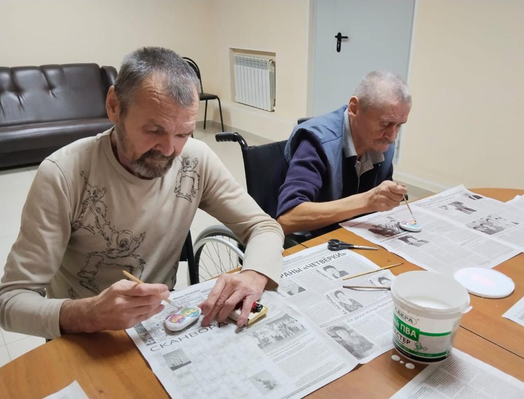 Выполнение подобных упражнений благоприятно сказывается на эмоциональной и когнитивной деятельности жителей нашего дома-интерната.
