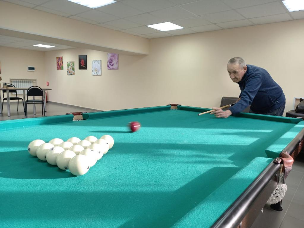 По мнению жителей дома-интерната, бильярд отличается от многих других спортивных игр своим относительным спокойствием - данный вид игры развивает интеллектуальные способности и гармонизирует мышление.