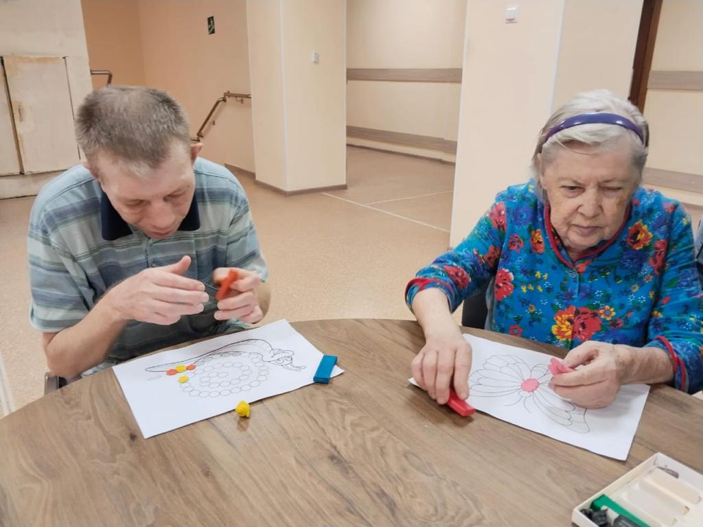 Сегодня в «Волго-Каспийском доме-интернате для престарелых и инвалидов» с жителями отделения «Милосердие» было проведено занятие «Рисование пластилином. Пластилинография». Погрузившись в этот увлекательный процесс, получатели социальных услуг выразили свои чувства, эмоции и настроение через творчество.