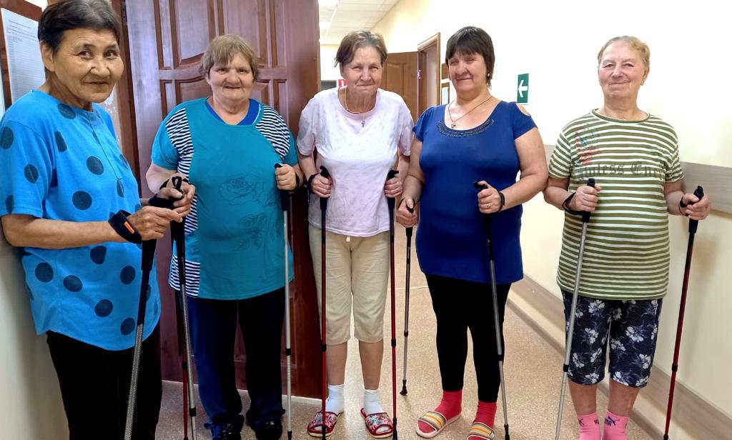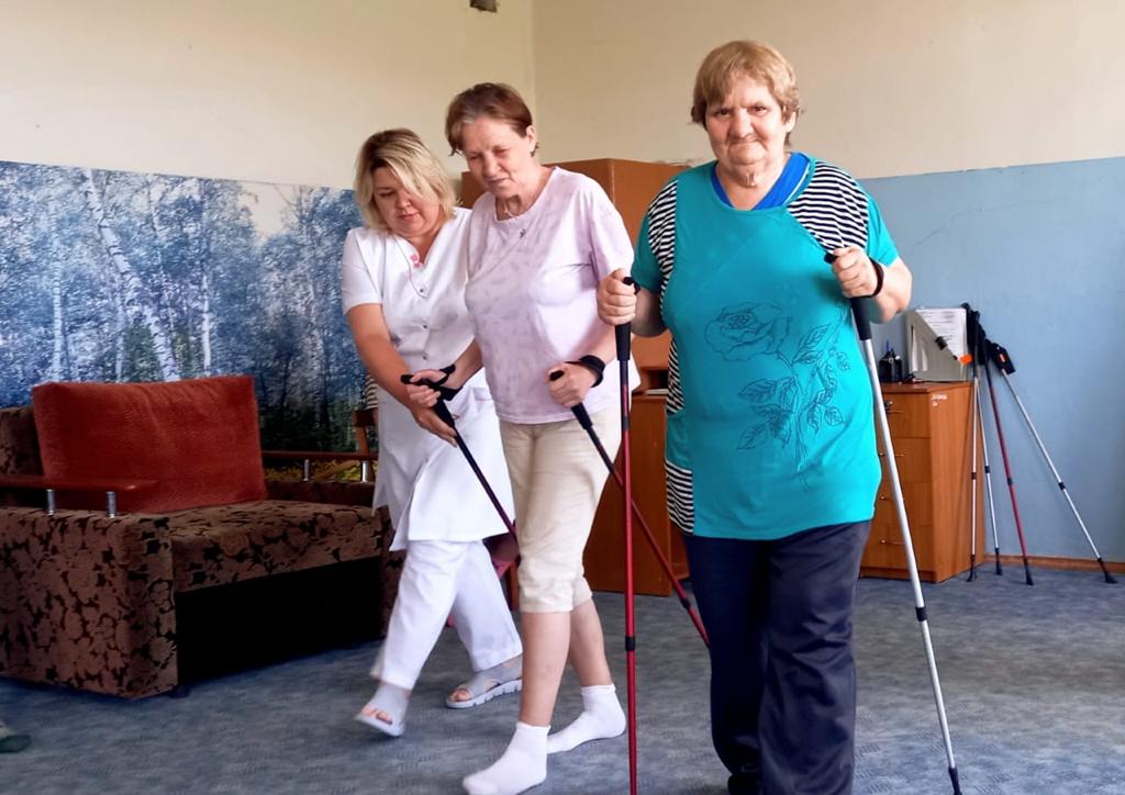 В рамках реализации комплексной социально-реабилитационной программы «Ступени долголетия» учреждением приобретены снаряды для скандинавской ходьбы. Сегодня состоялось первое ознакомительное занятие с этим видом спорта. Инструктор по ЛФК наглядно и доступно объяснила получателям социальных услуг систему обращения со снарядами, на следующем занятии запланировано приступить к практике.