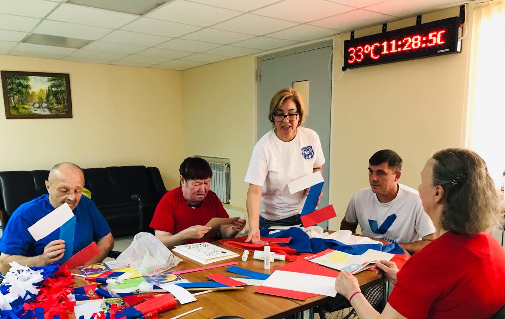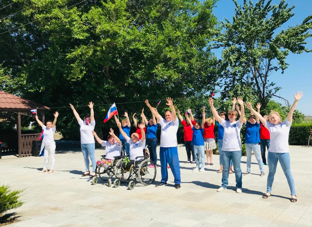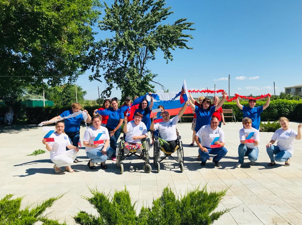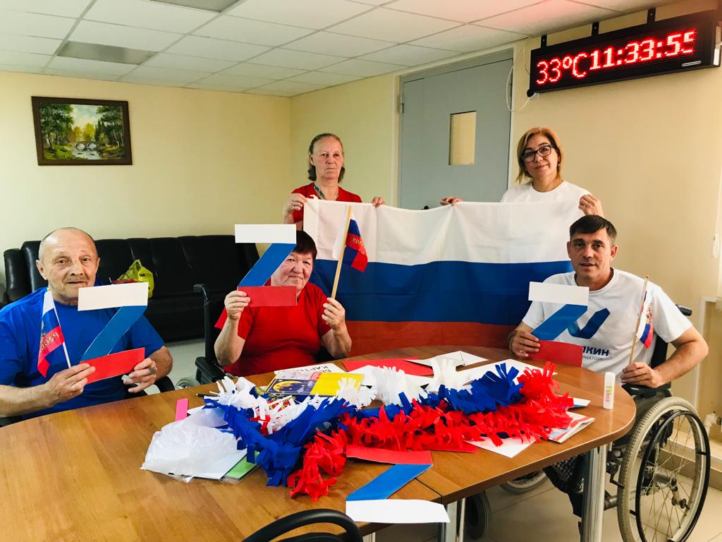 В преддверии праздника, в чудесный солнечный день, получатели социальных услуг и сотрудники нашего дома-интерната приняли участие во флешмобе «Я – гражданин России!» По местному радио, на протяжении дня, звучали поздравления для всех слушателей и любимые песни о России. А для участников мастер-класса «Символы России» нашлось интересное творческое занятие. Участники мастер-класса своими работами старались выразить свое отношение к Родине и всем живущим в нашей стране – России.