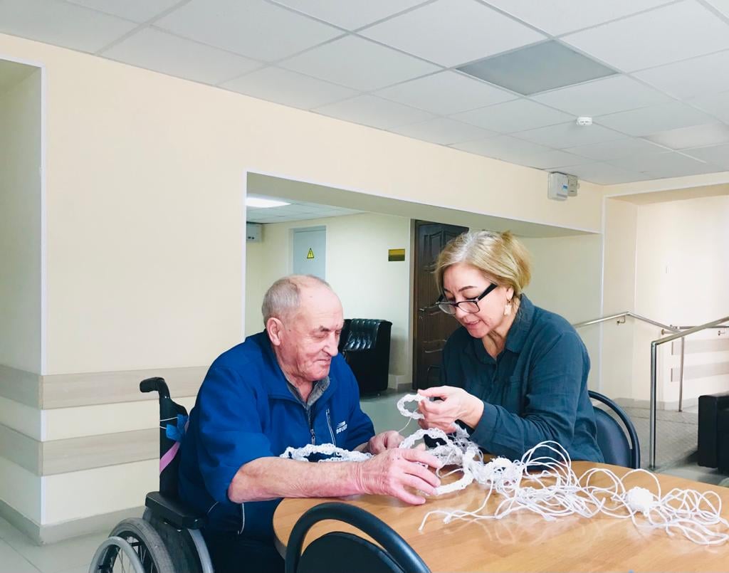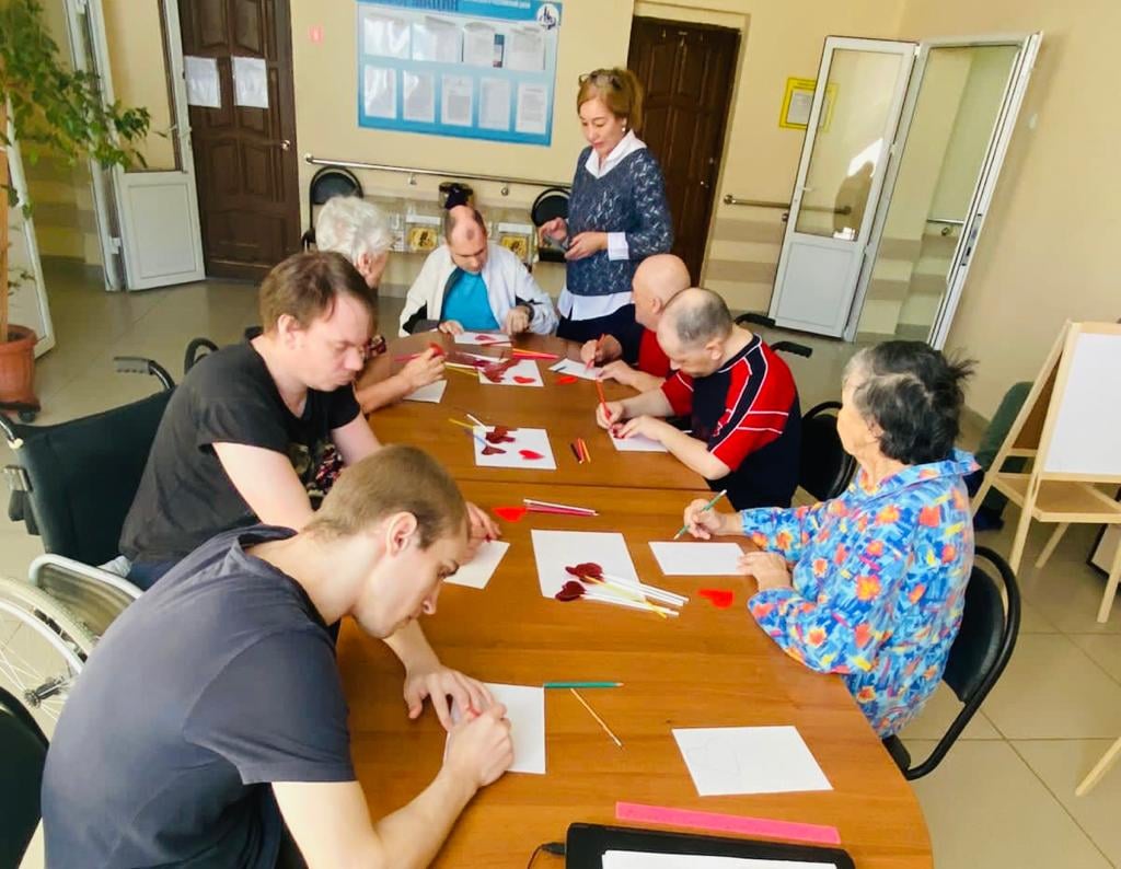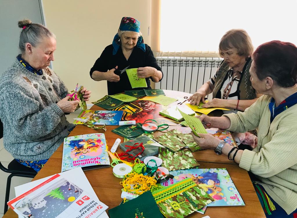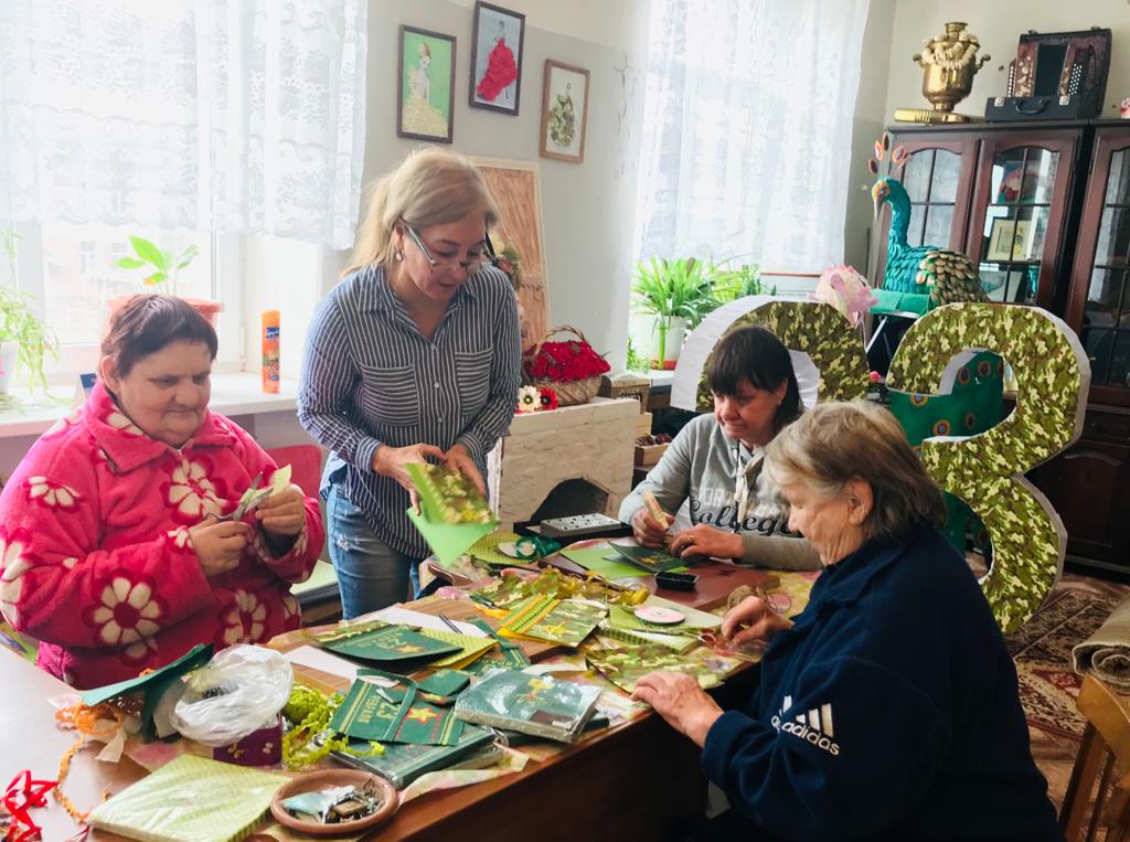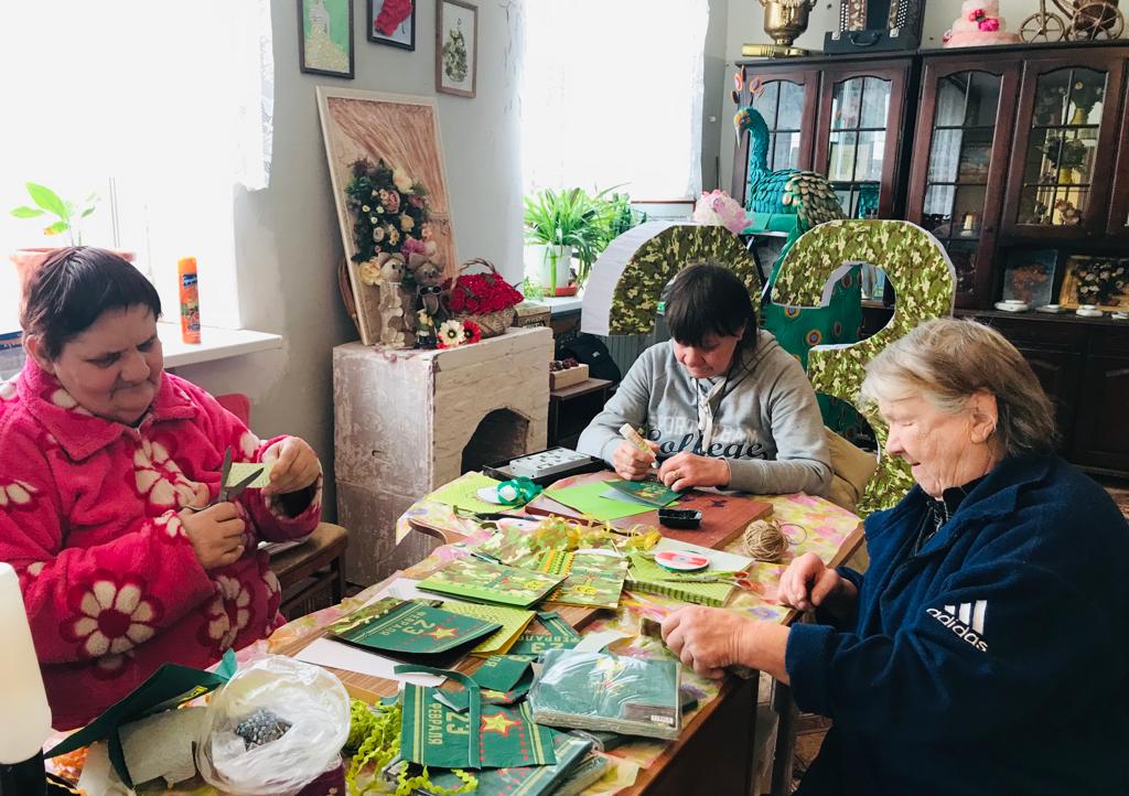 Чтобы этот день стал ярким воспоминанием для мужчин – получателей социальных услуг нашего дома-интерната, женщины продолжают активно готовиться к празднику. Сегодня был проведен мастер-класс по изготовлению поздравительных открыток в технике скрап-букинг. Присутствующие на мастер-классе женщины с интересом принялись за дело. Каждый, на свое усмотрение, смог украсить открытку цветами, звёздами и написать душевное поздравление.
