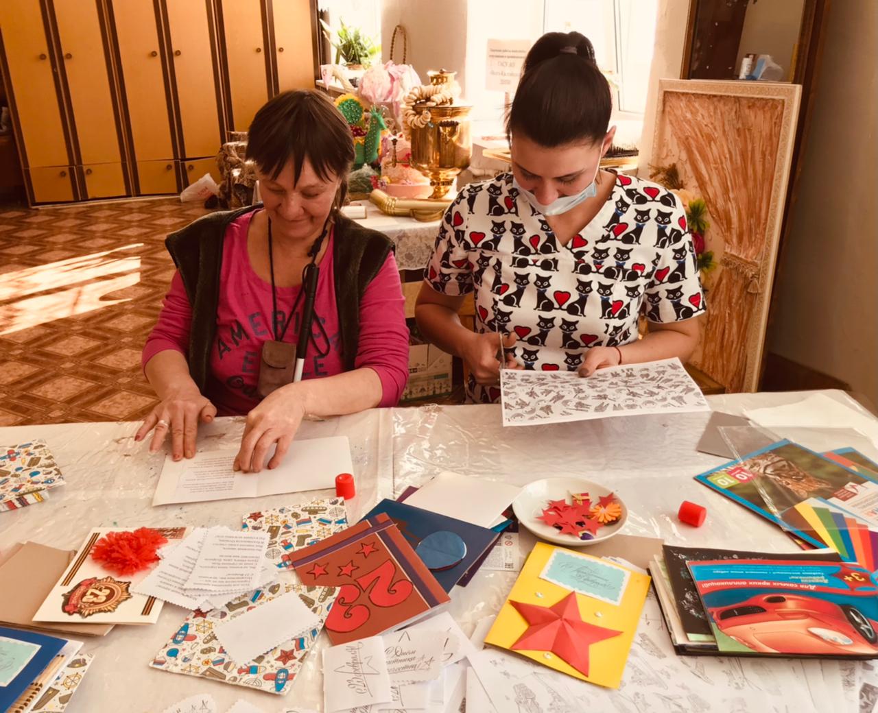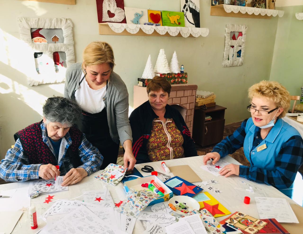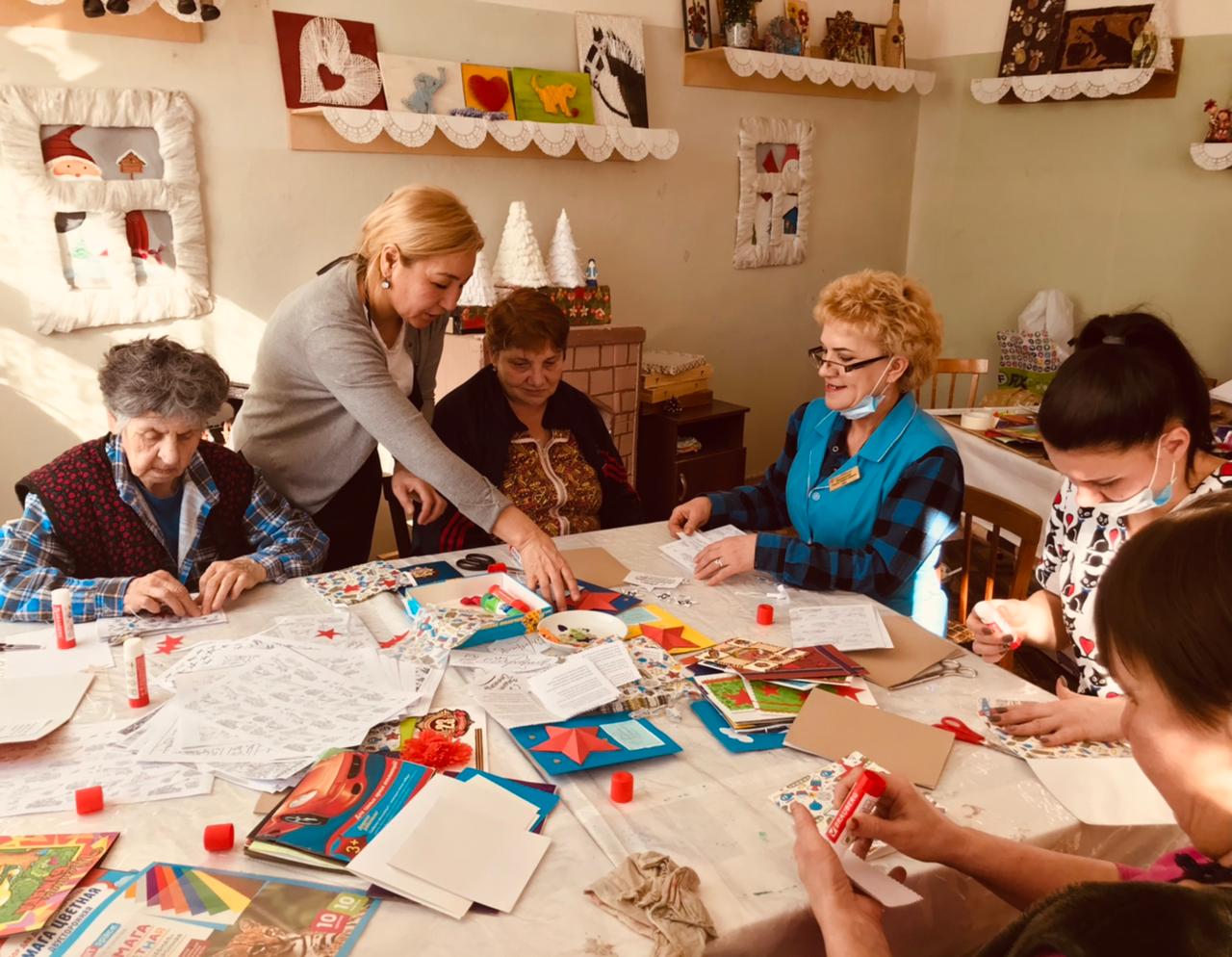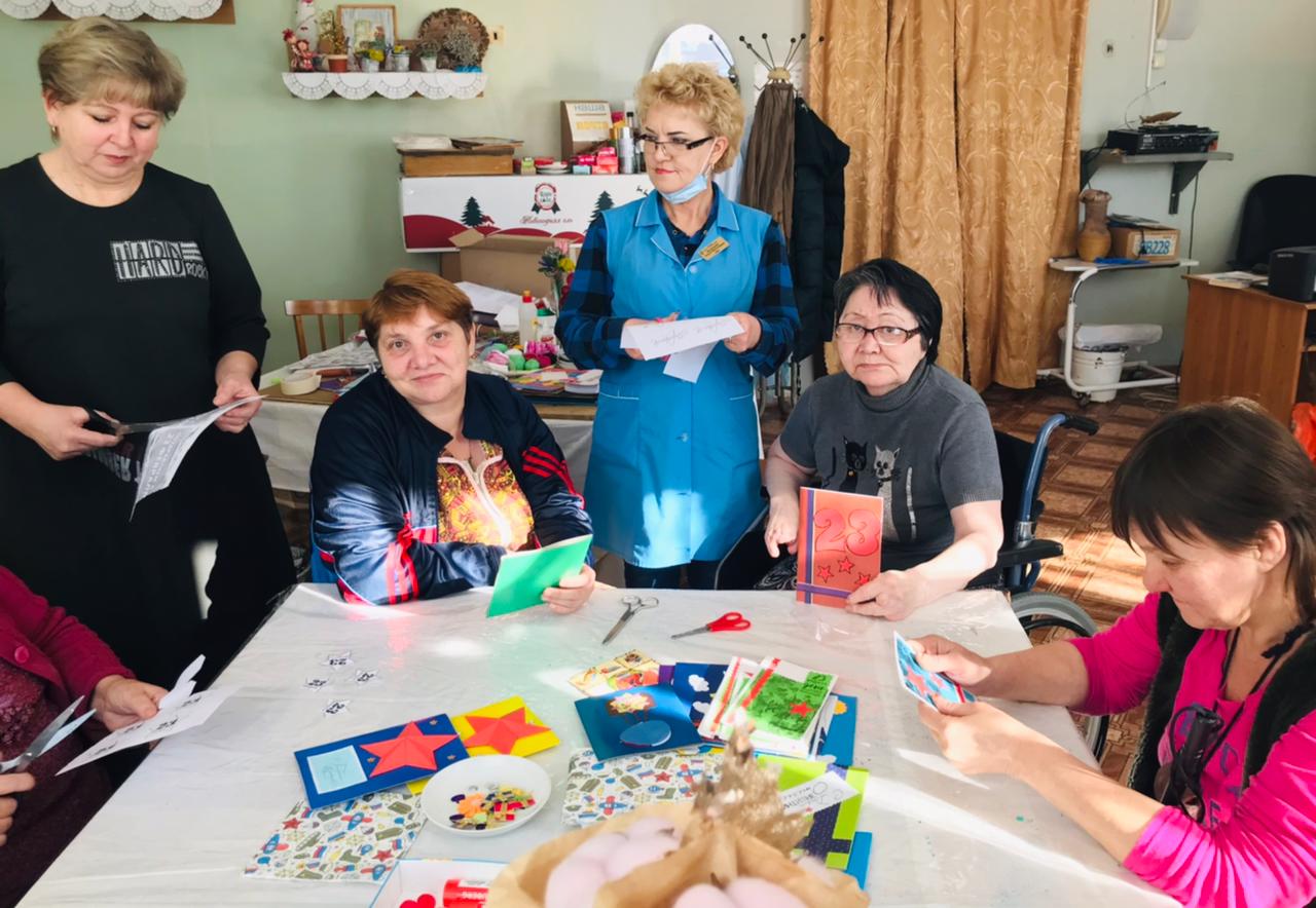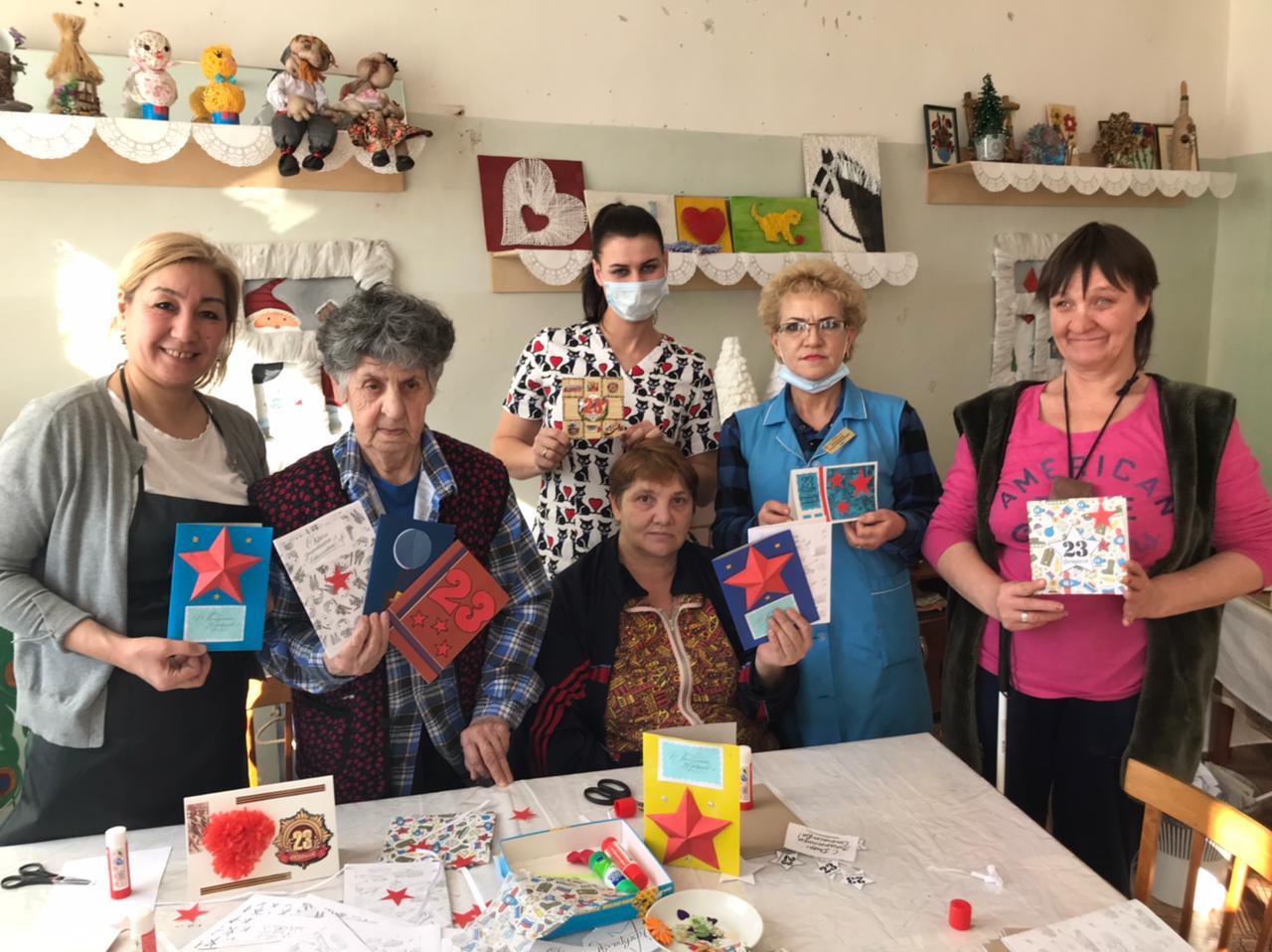Стало хорошей традицией нашего Учреждения получать поздравления от маленьких друзей из детских социально - реабилитационных центров. В преддверии праздника, воспитанники центров «Вера» и «Гармония» подготовили созданные своими руками поздравительные открытки, которые будут вручены каждому мужчине 23 февраля. Не остались в стороне от подготовки к празднику и получатели социальных услуг прекрасные женщины, которые с интересом приняли участие в работе творческой мастерской по изготовлению поздравительных открыток-сувениров для мужчин, проживающих в «Волго-Каспийском доме - интернате для престарелых и инвалидов». В свои работы они вложили теплоту своего сердца, пожелания здоровья, неиссякаемого боевого духа, счастливых и светлых дней. В процессе работы звучали песни в исполнении рукодельниц, они делились друг с другом воспоминаниями о праздновании 23 февраля в их семьях. Женщины трепетно выбирали и оформляли поздравления, а появившийся блеск в их глазах, лишний раз подтвердил значимость нашей работы.
