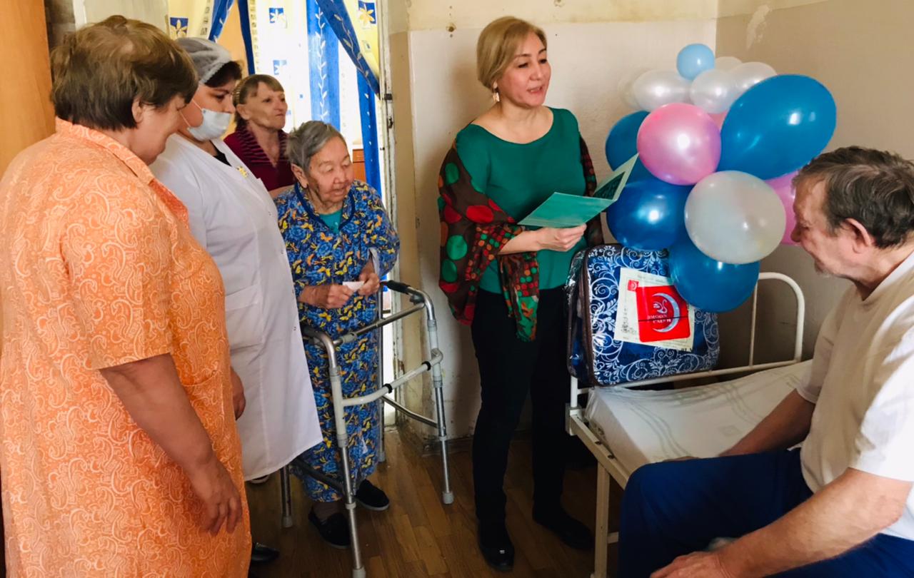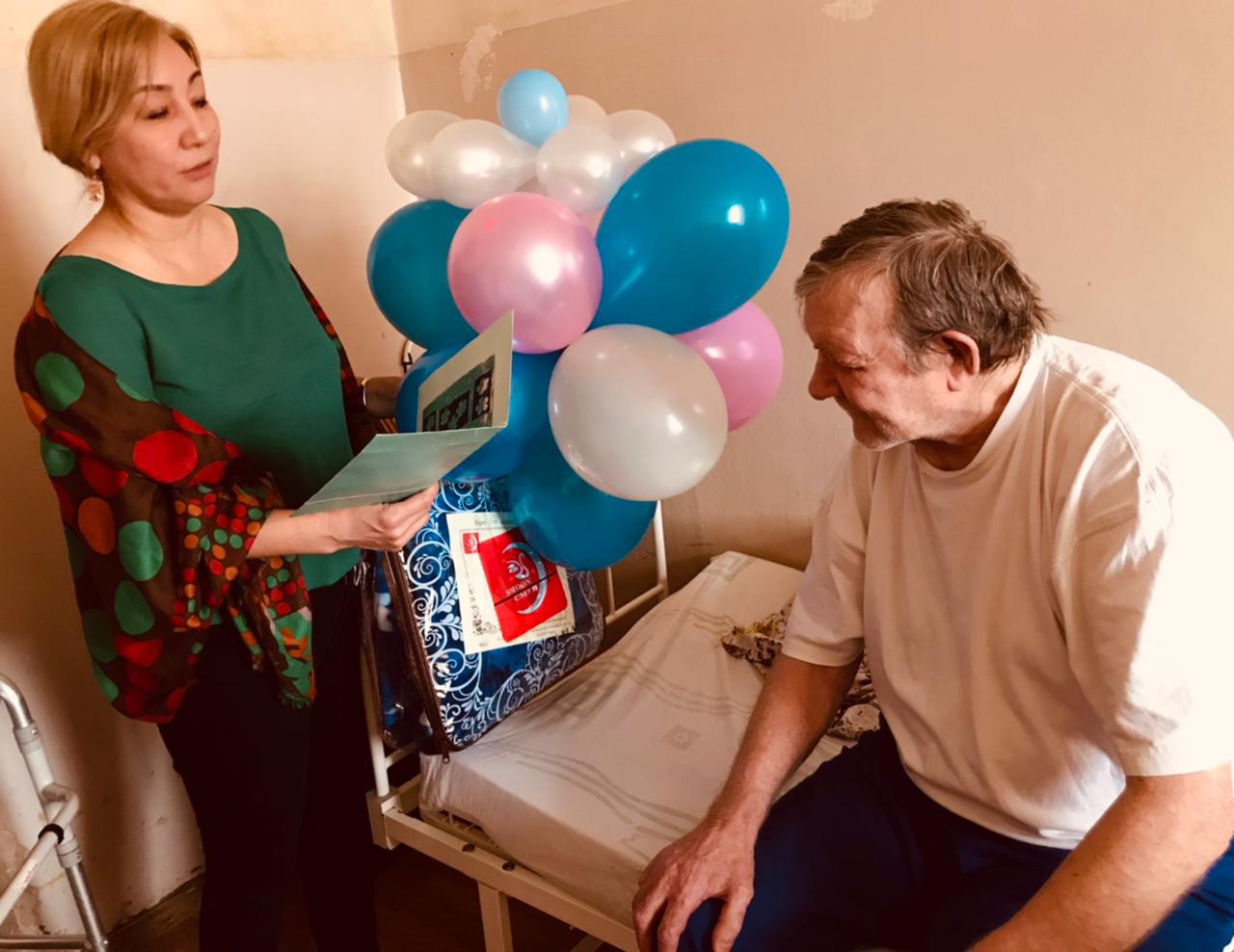 Сотрудники дома-интерната вручили юбиляру памятный подарок и пожелали крепкого здоровья и хорошего настроения!