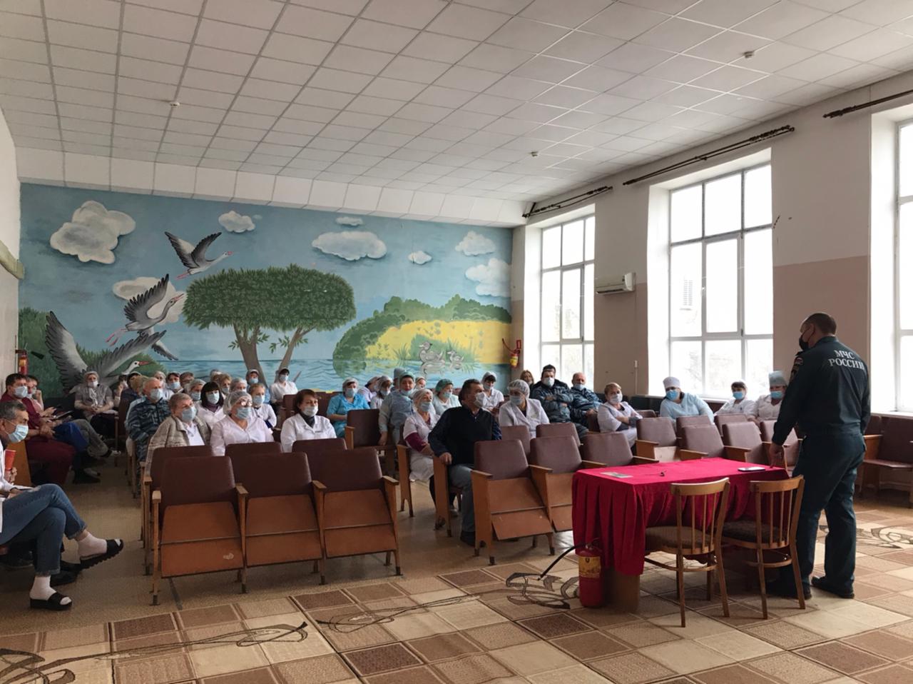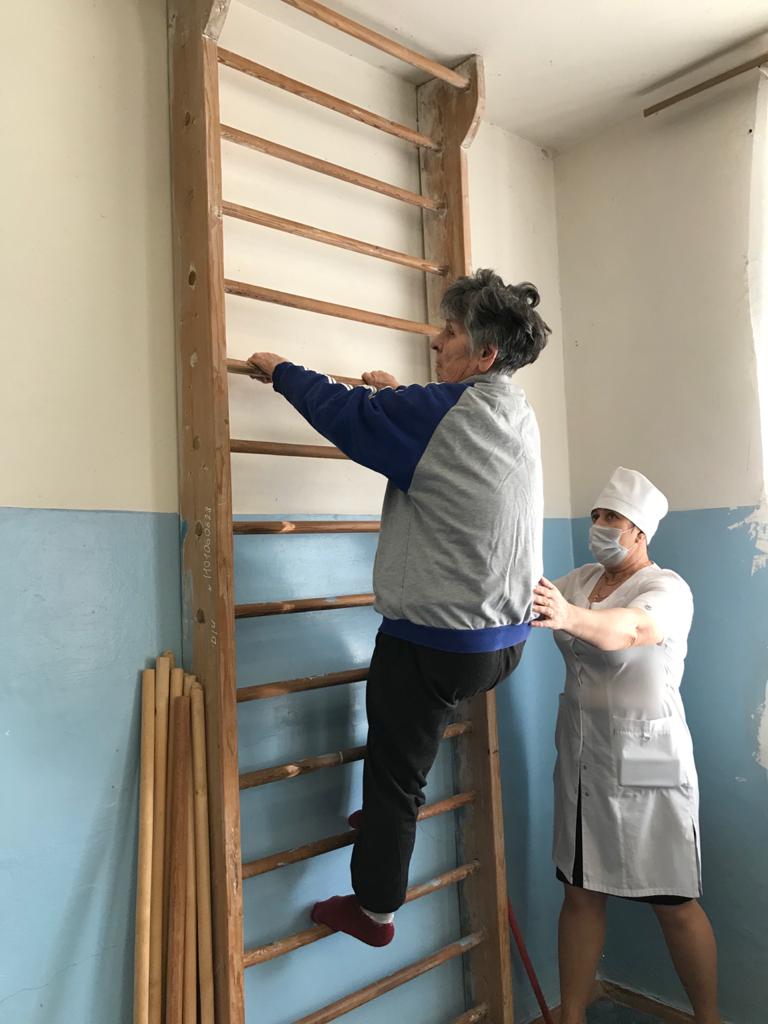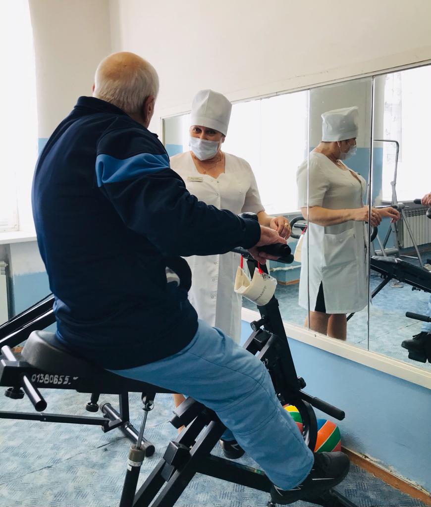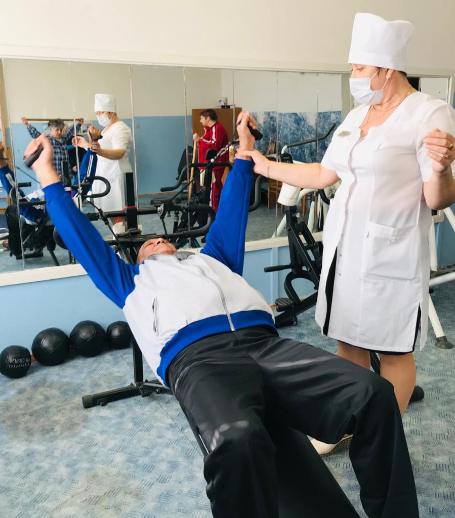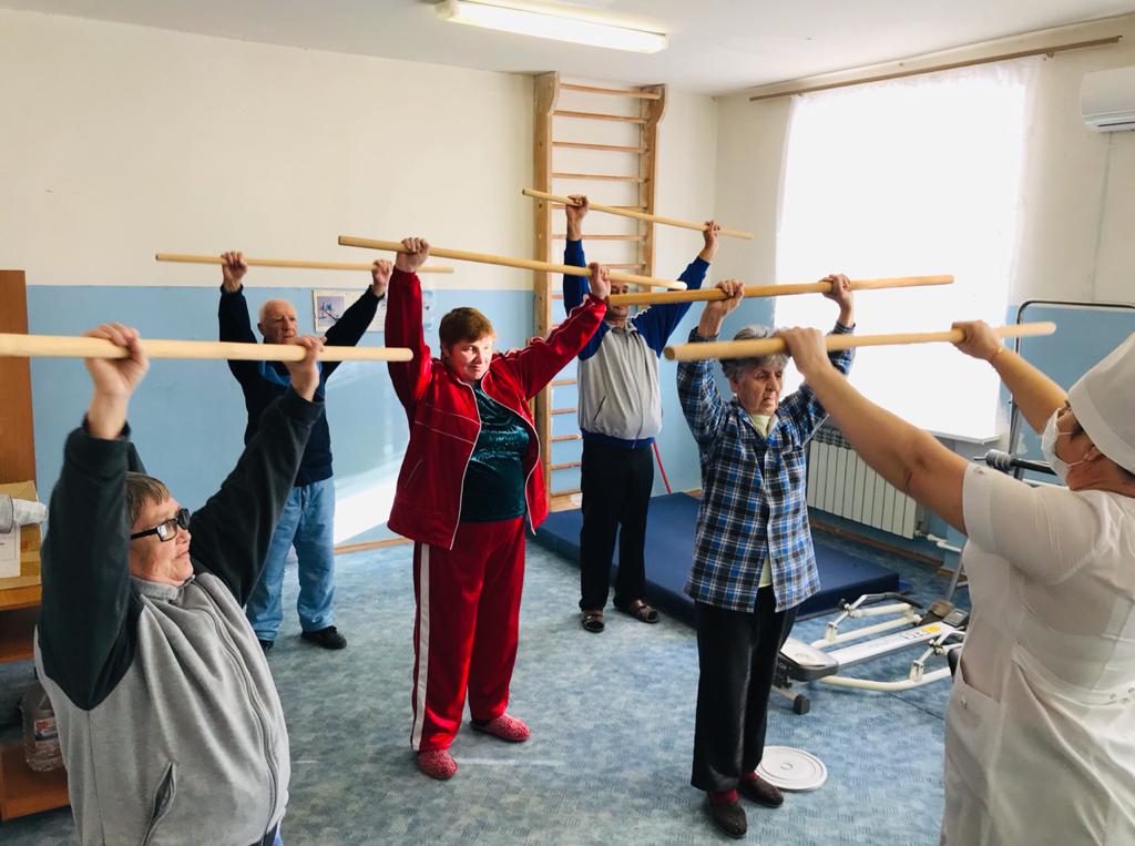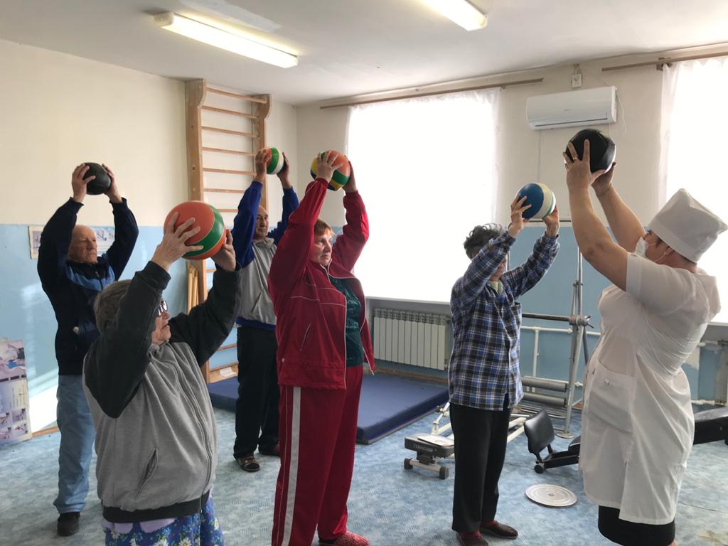А также проводятся комплекс спортивно - оздоровительных мероприятий, направленных на реабилитацию и адаптацию проживающих. Мероприятия проходят индивидуально и также разбиты на группы в зависимости от состояния здоровья. Для каждой группы разработан комплекс упражнений. При подборе физической нагрузки для людей пожилого возраста учтены, что снижен обмен веществ, имеются изменения скелета, повышение тонуса и снижение силы мышц, нарушены осанка и походка из-за смещения центра тяжести, имеются проблемы с координацией движений и равновесием.