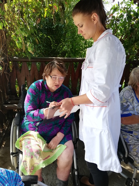 -Мы находимся в В…-сестра называет населённый пункт где находится дом престарелых. Дама кивает.