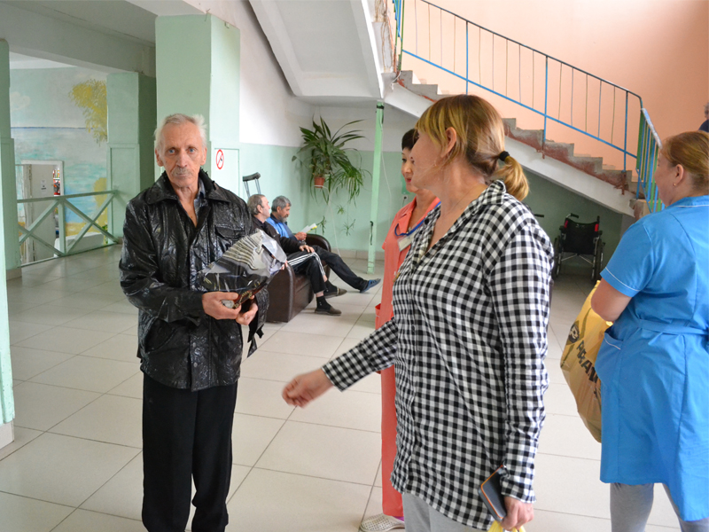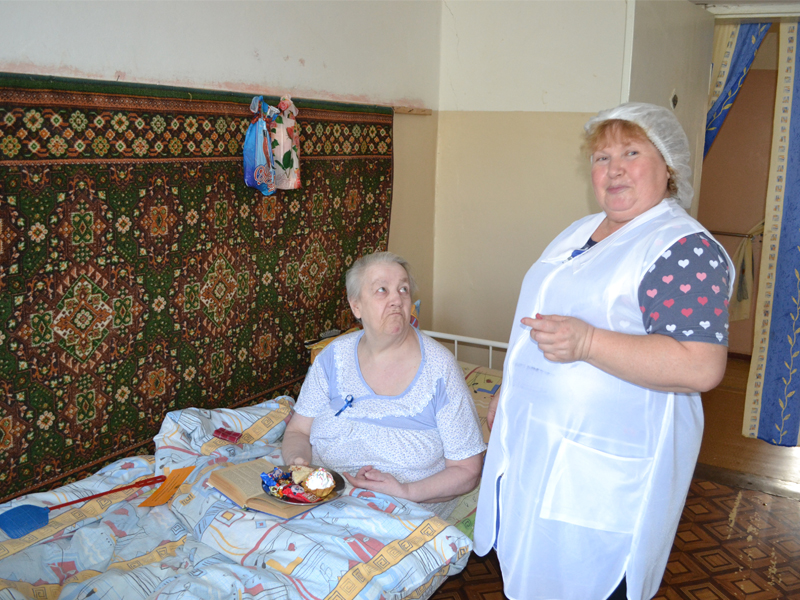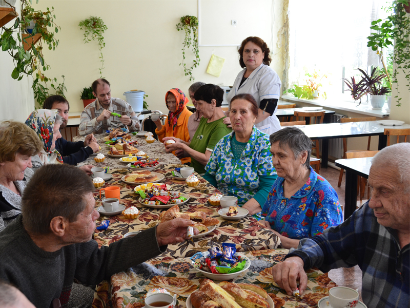Сегодня во всех отделениях дома-интерната праздничное настроение, звучит музыка, обслуживающий персонал суетятся, накрывая чайный стол. Пыхтит паром самовар, а на столе сладости и угощения.