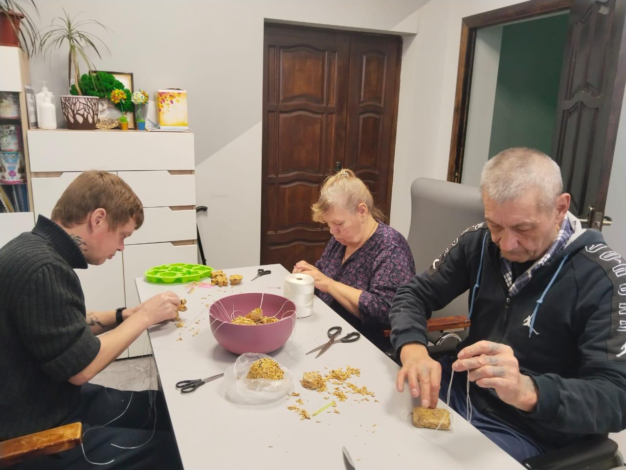 Теперь, выходя на прогулку, получатели социальных услуг могут любоваться птицами, которые прилетели подкрепиться, проявляя тем самым не только заботу, но и расширяя свои знания о повадках птиц, особенностях их внешнего вида.