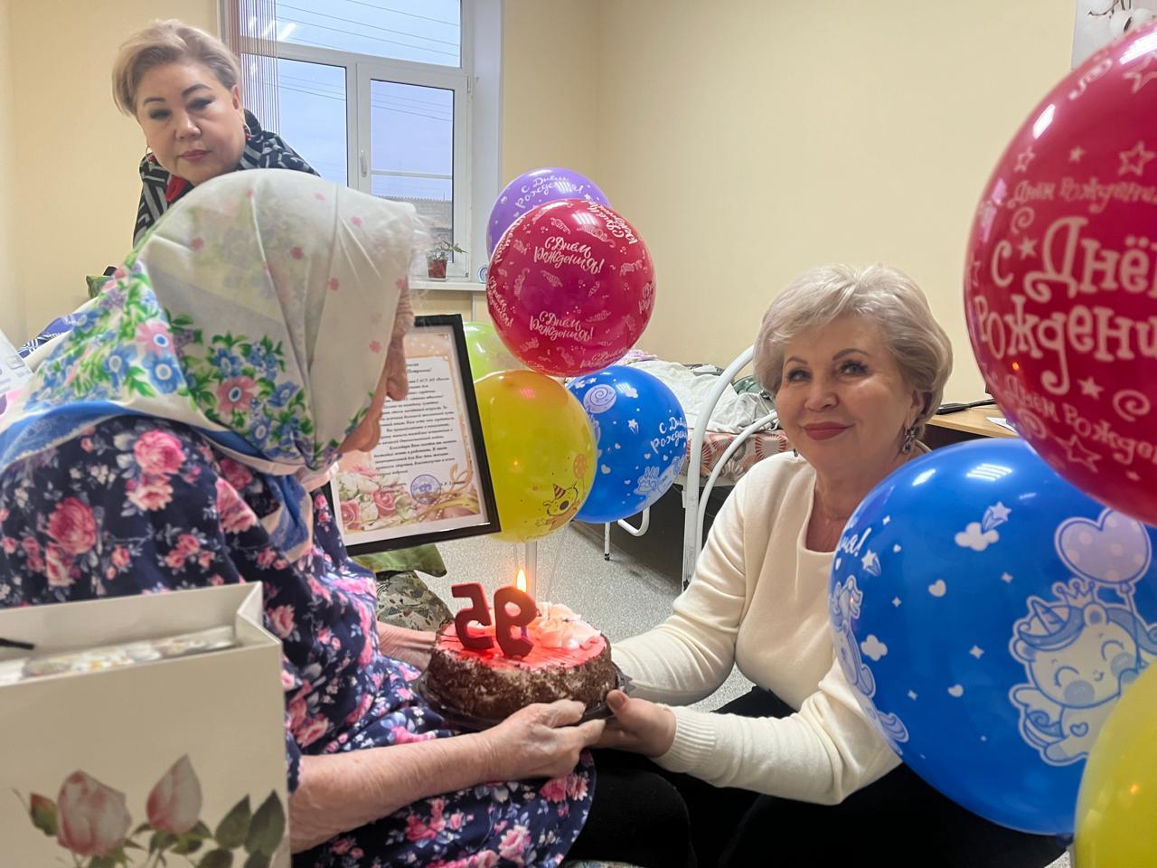 Администрация и сотрудники дома-интерната, от души, преподнесли виновнице торжества подарки, в ее адрес звучали теплые и добрые слова и пожелания. «Вы относитесь к поколению победителей, переживших тяготы военного лихолетья, и мы гордимся Вами…» - обратилась к юбиляру директор учреждения Эльвира Туишева.