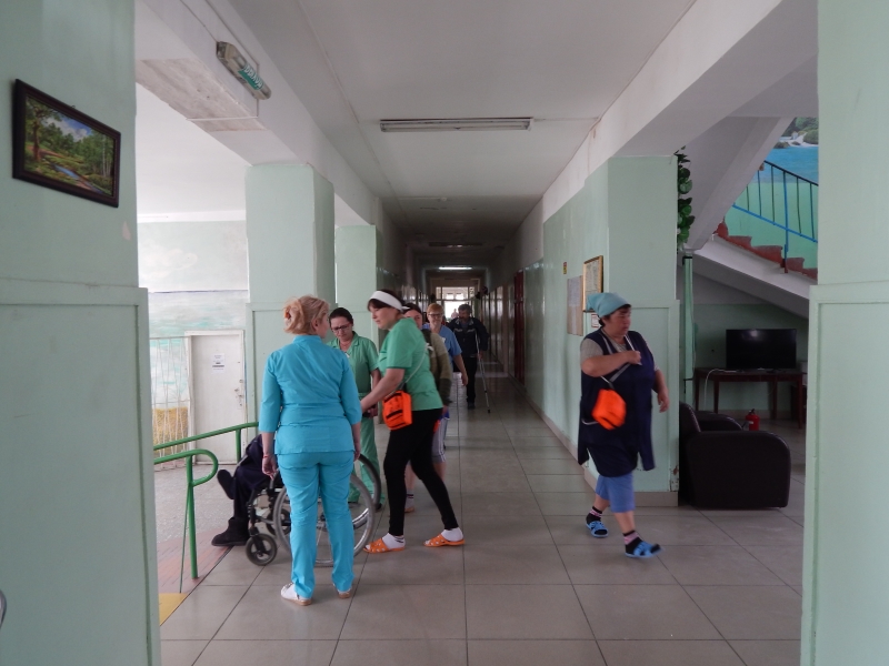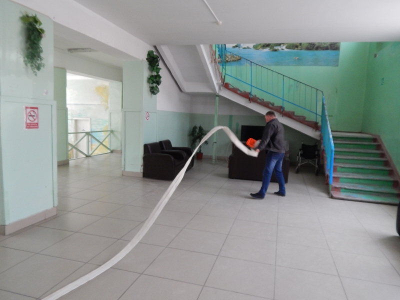 В мероприятие, обеспечивающие безопасность людей в учреждении обязательно включаются тренировки, связанные с действиями персонала при обнаружении возгорания и пожара. Цель - выработать у персонала умение идентифицировать происходящее событие с точки зрения опасности, убедиться в готовности систем оповещения о пожаре, научить персонал правилам ликвидации горения, а также оказание помощи по эвакуации проживающих. Эвакуация людей при пожаре (имитированном) должна занять не более 10 минут - это время перехода локального возгорания на стадию объемного пожара.